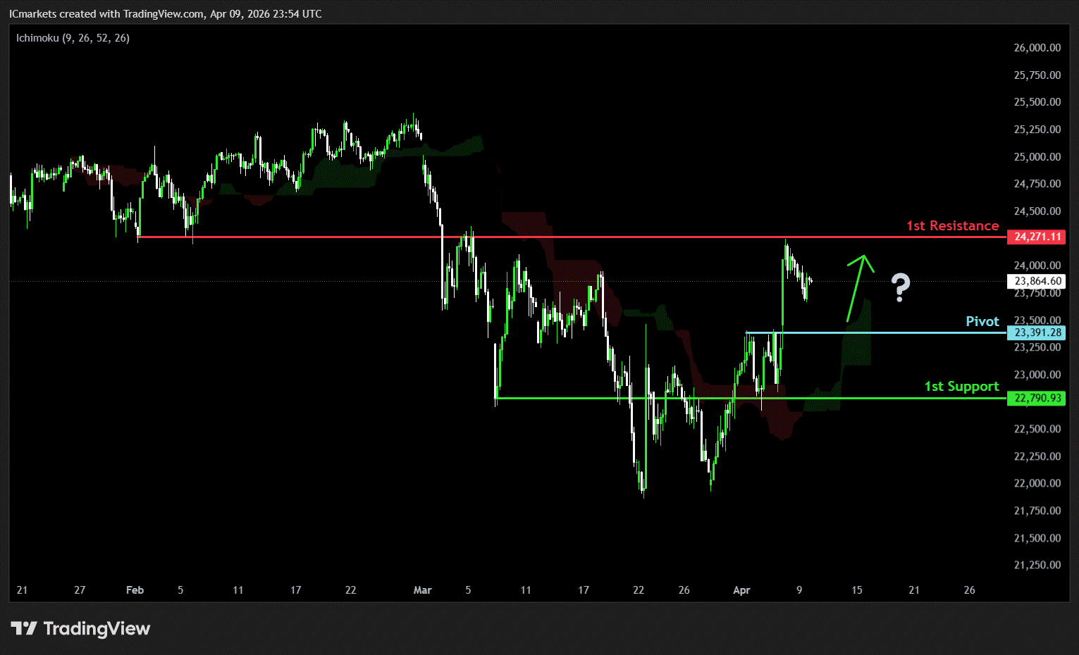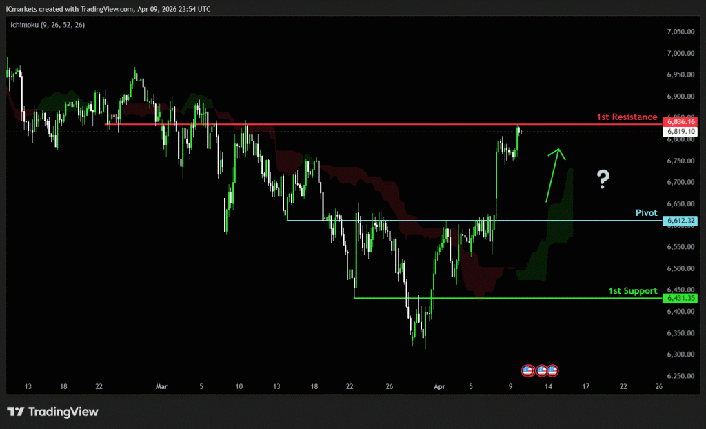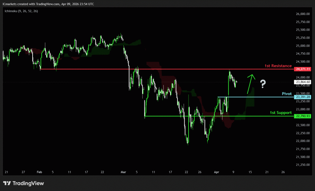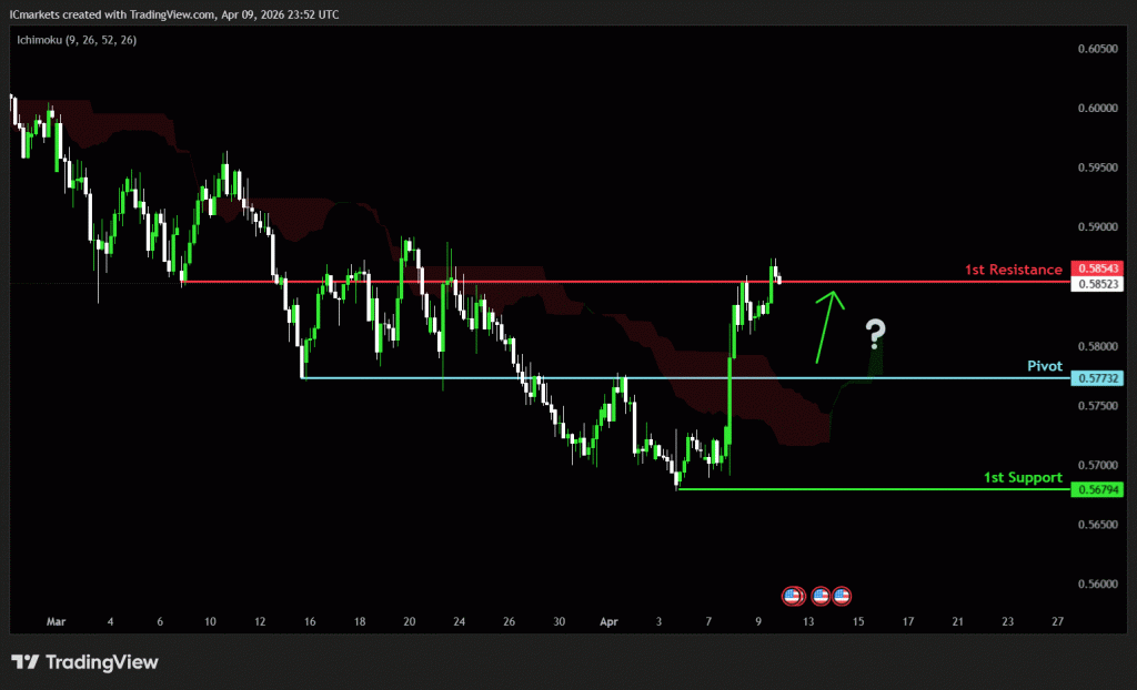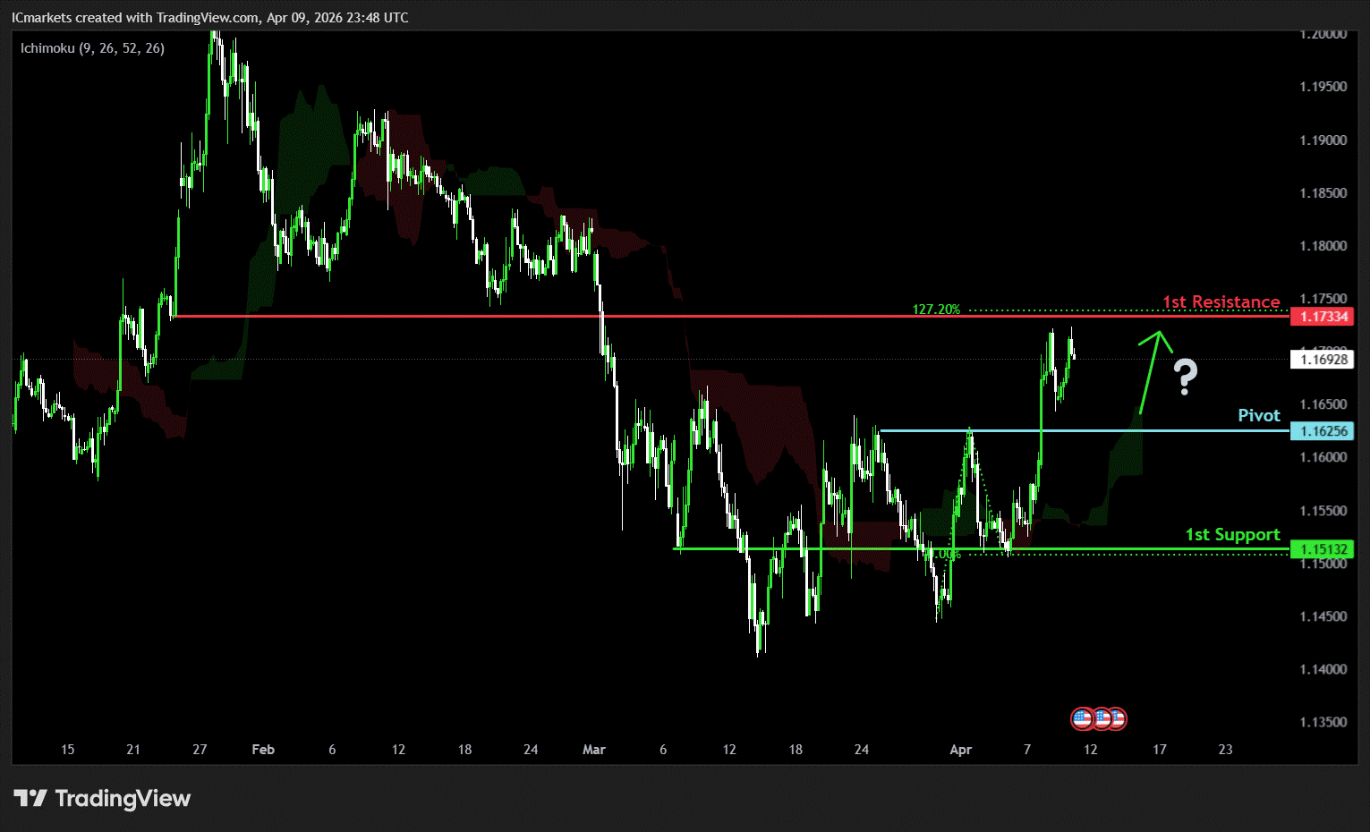 The price could see a short-term pullback toward the pivot before rising again toward the 1st resistance.