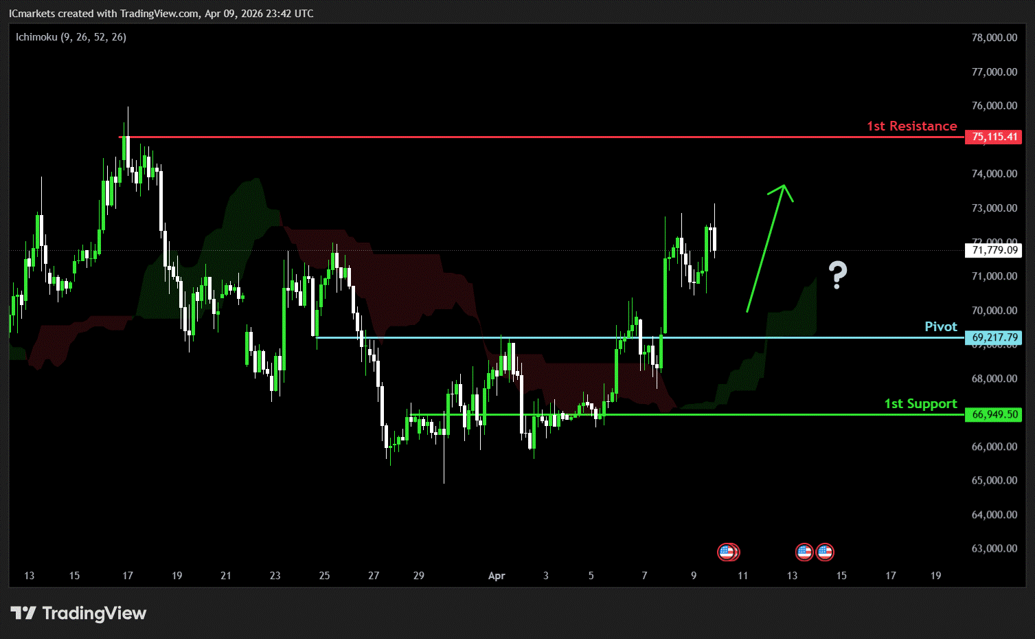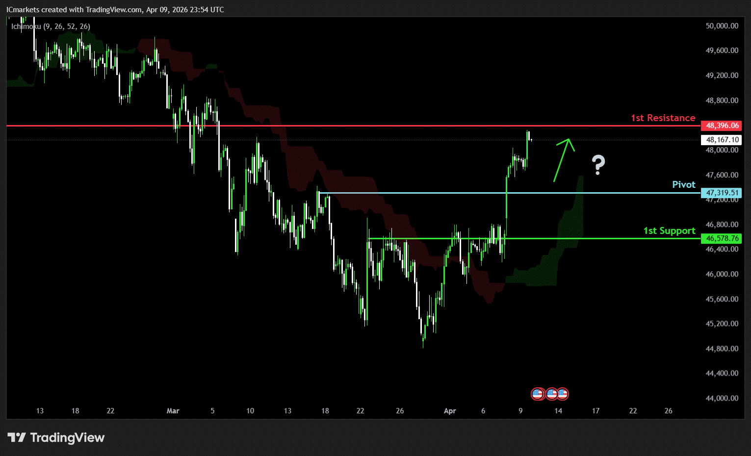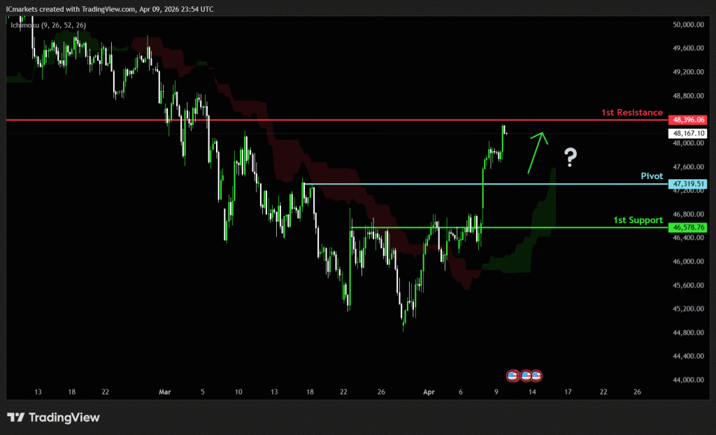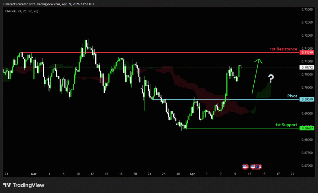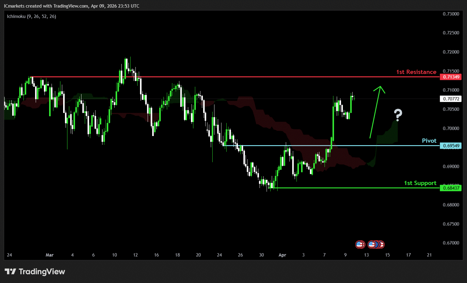 The price could see a short-term pullback toward the pivot before rising again toward the 1st resistance.