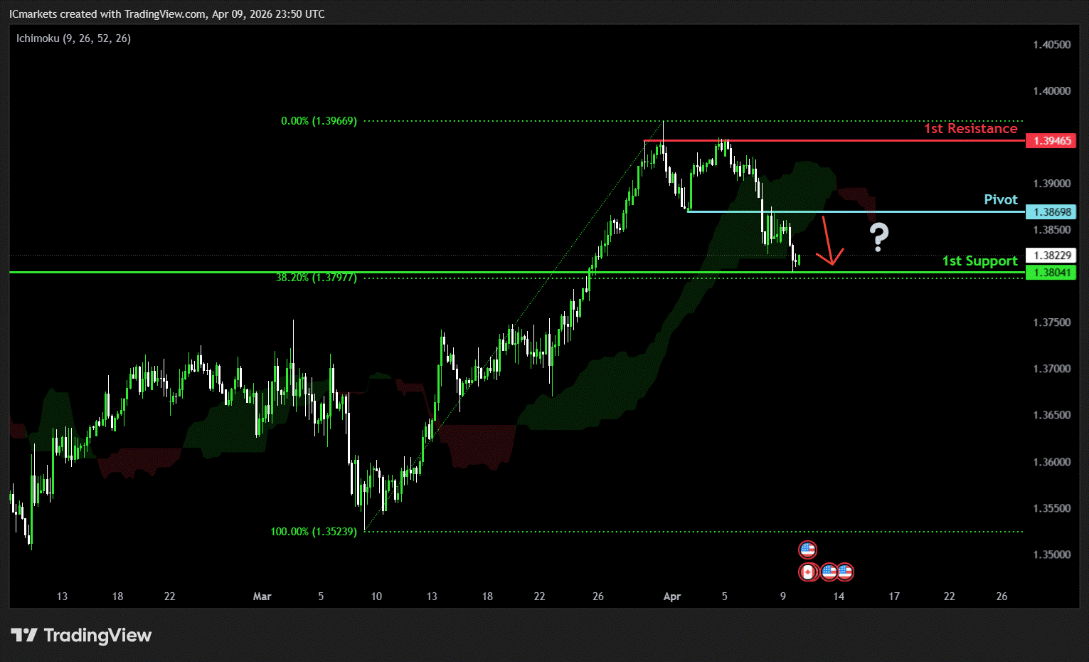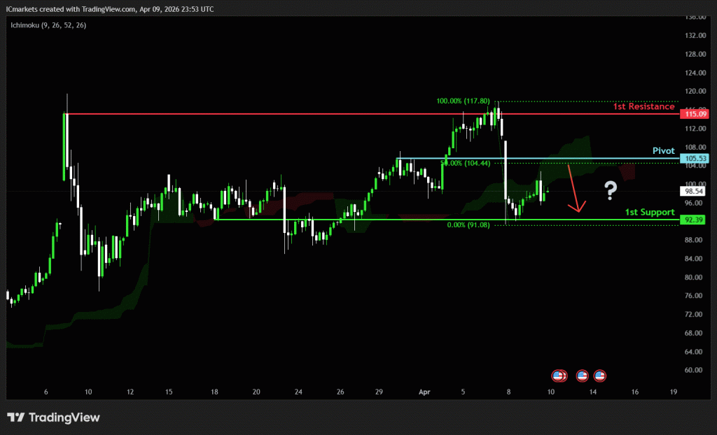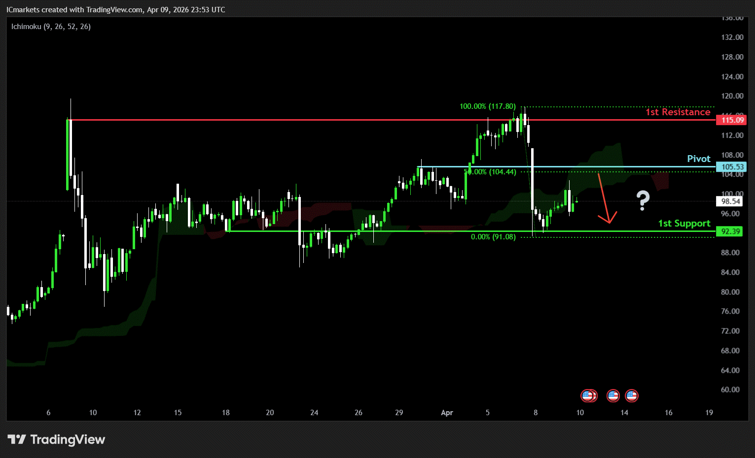 The price could see a short-term pullback toward the pivot before continuing its bearish move down toward the 1st support.