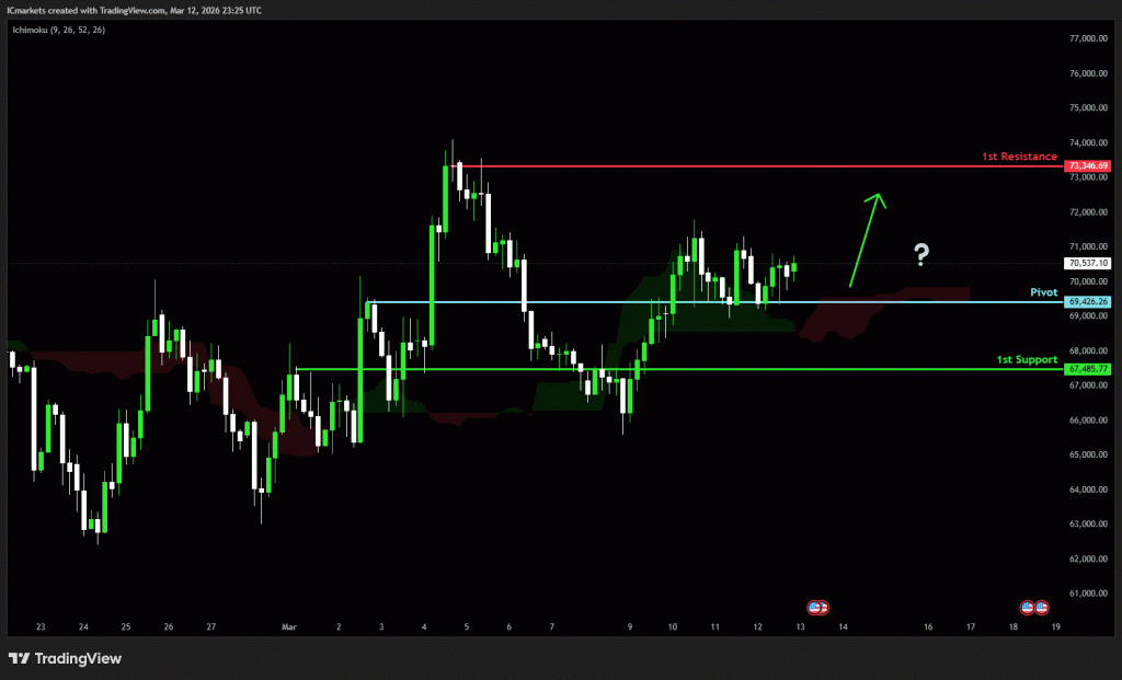 The price could see a short-term pullback toward the pivot before rising again toward the 1st resistance.