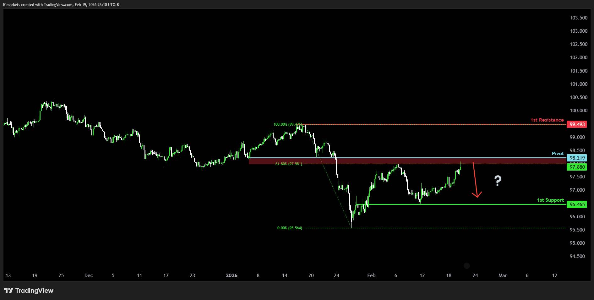 Supporting reasons: Identified as an overlap support that aligns with the 61.8% Fibonacci projection and the 127.2% Fibonacci extension, where renewed buying pressure could emerge and push the price higher.