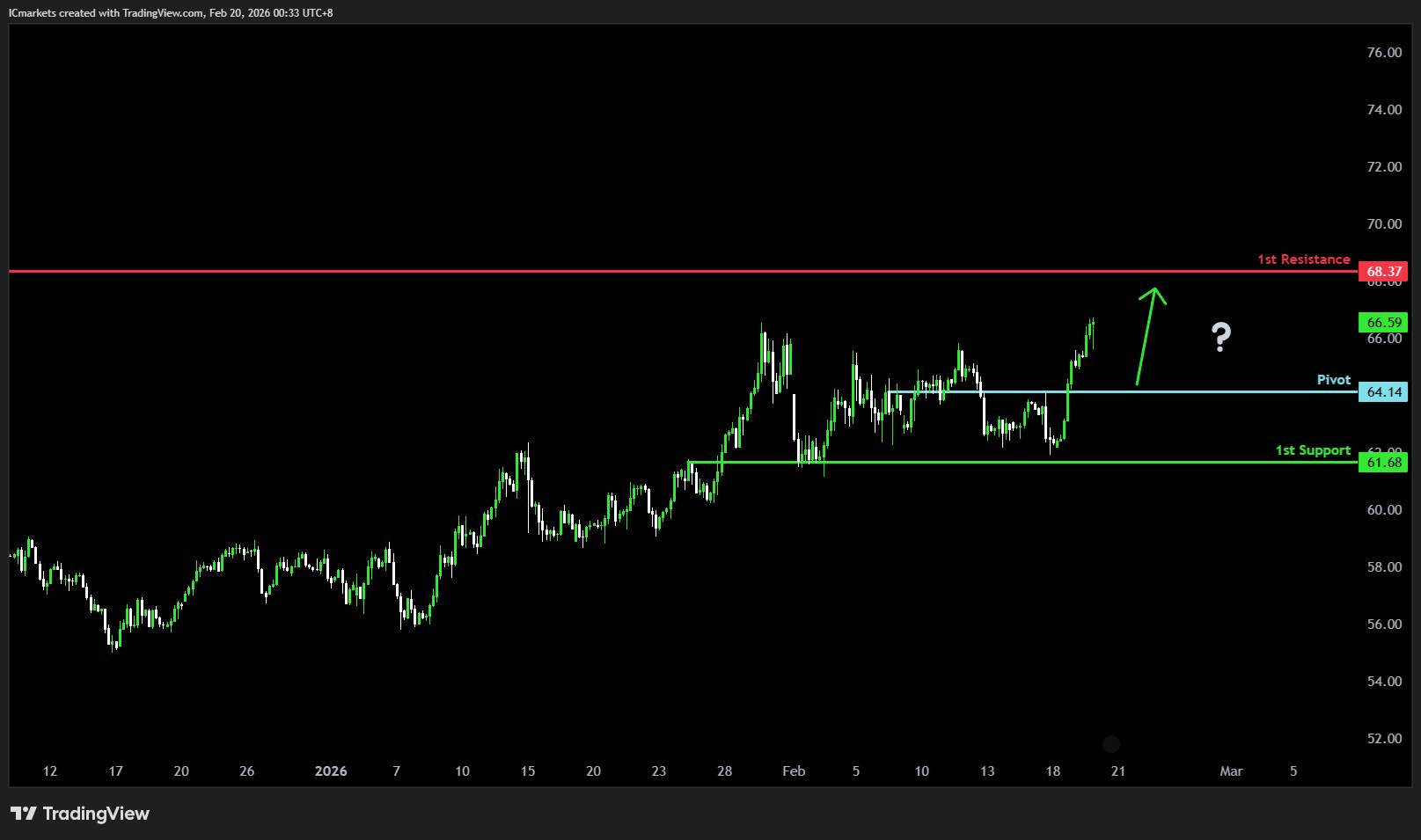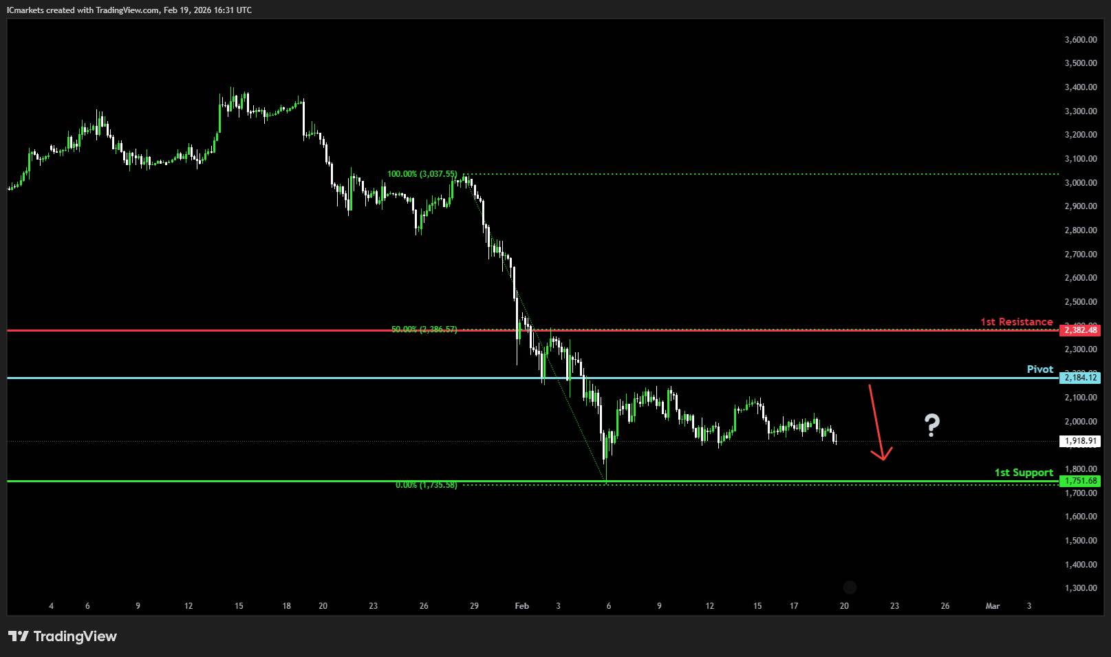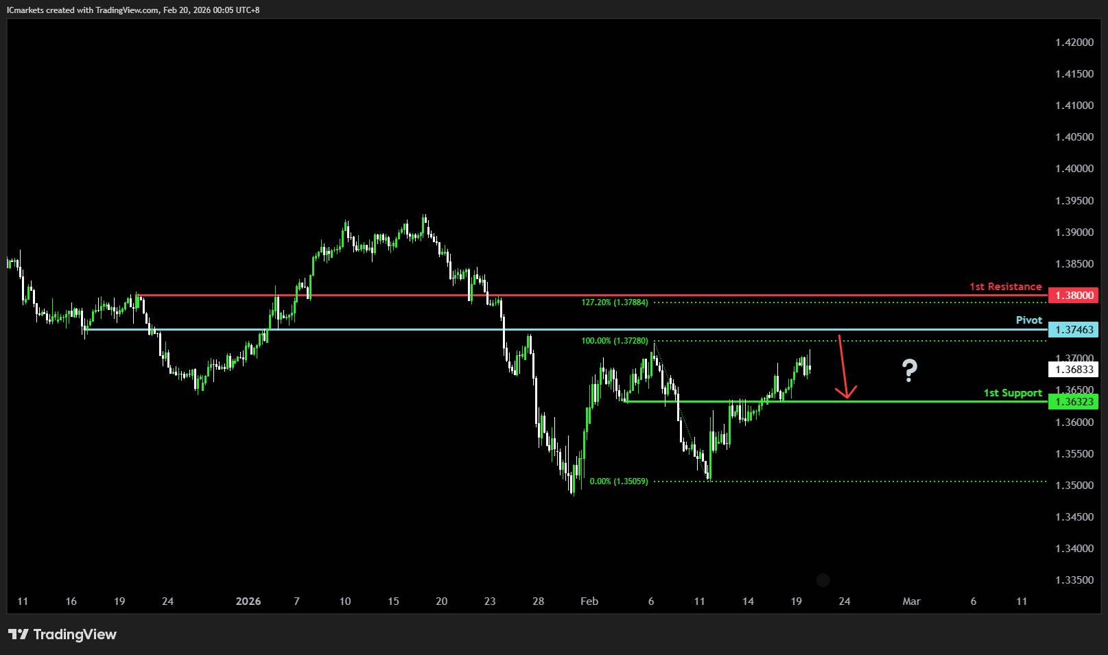 The price could see a short-term pullback toward the pivot, where the price may reverse and fall toward the 1st support.