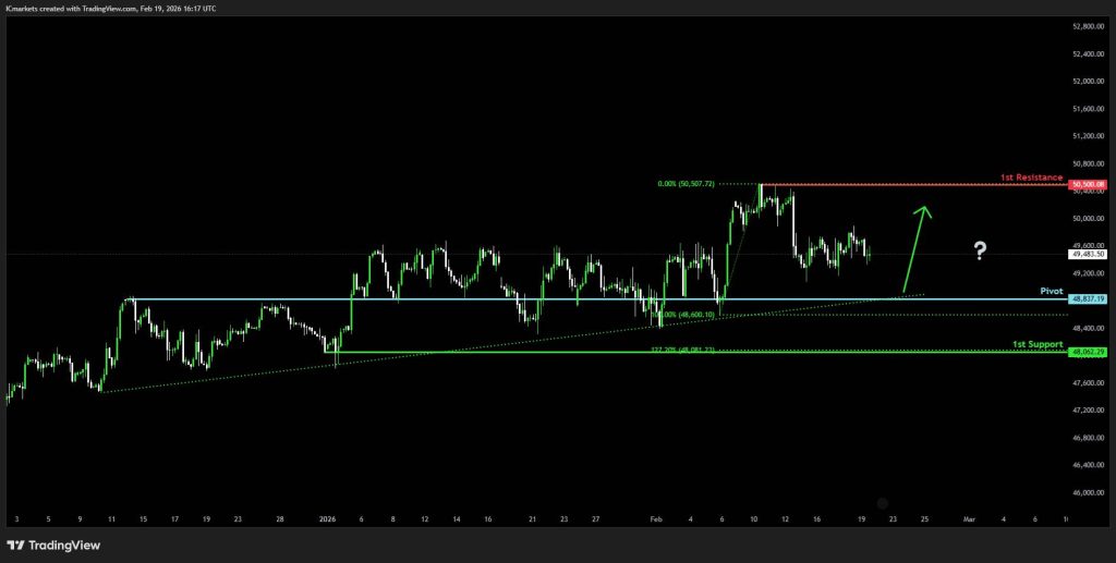 Supporting reasons: Identified as a pullback support that aligns with the 61.8% Fibonacci retracement, where renewed buying pressure could emerge to push the price higher.