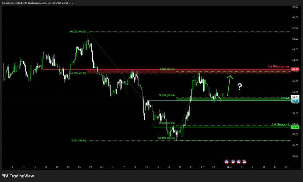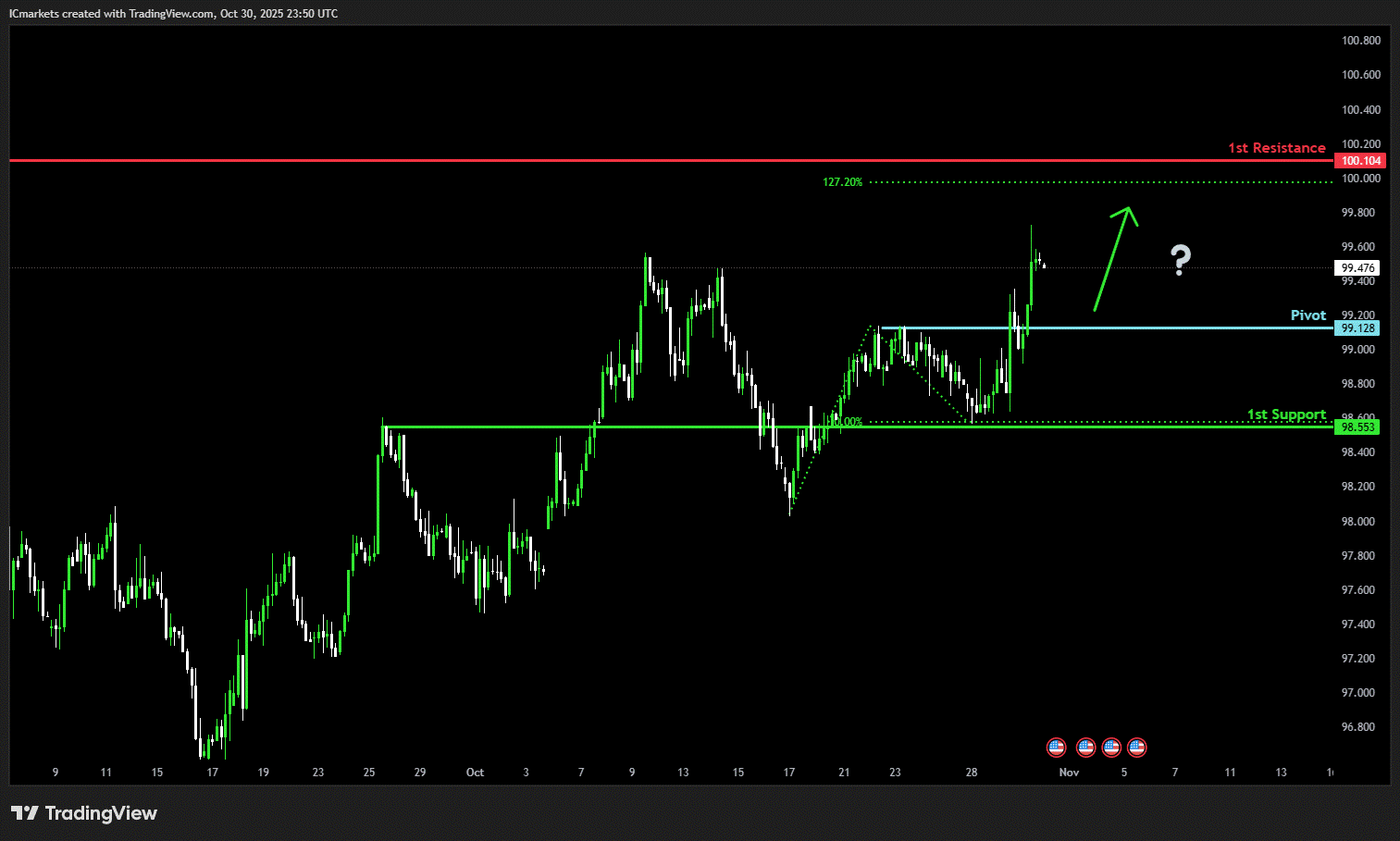 The price could see a short-term pullback toward the pivot before rising again toward the 1st resistance.
