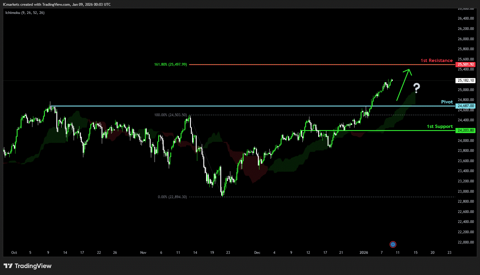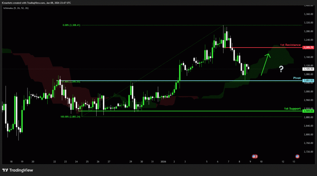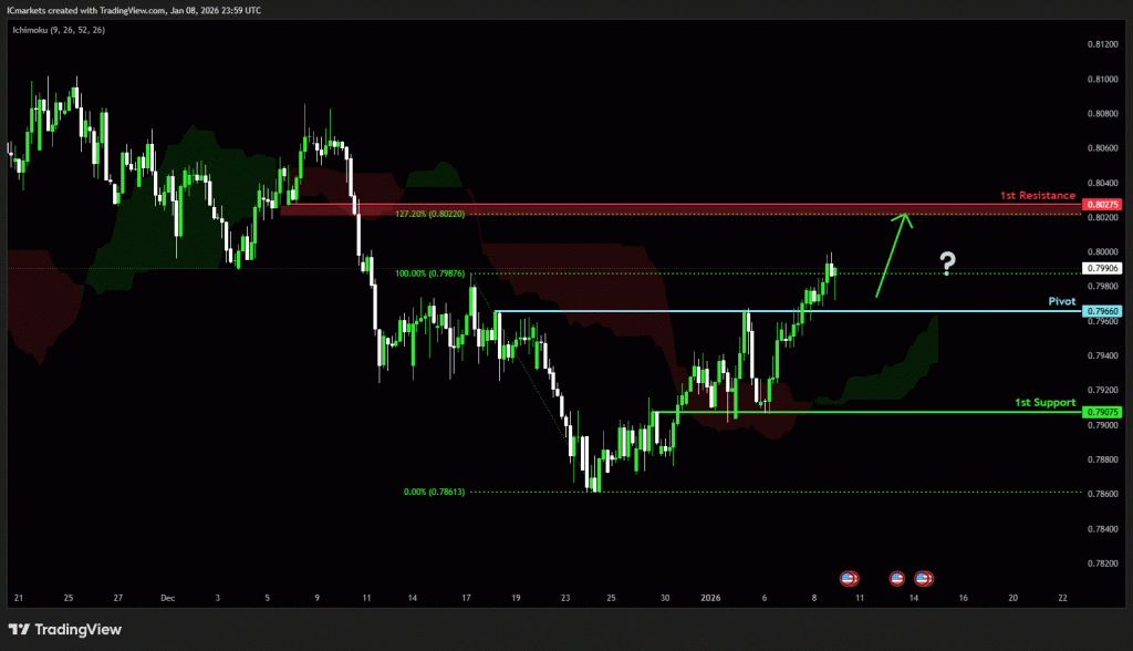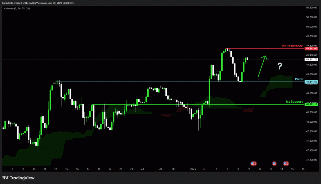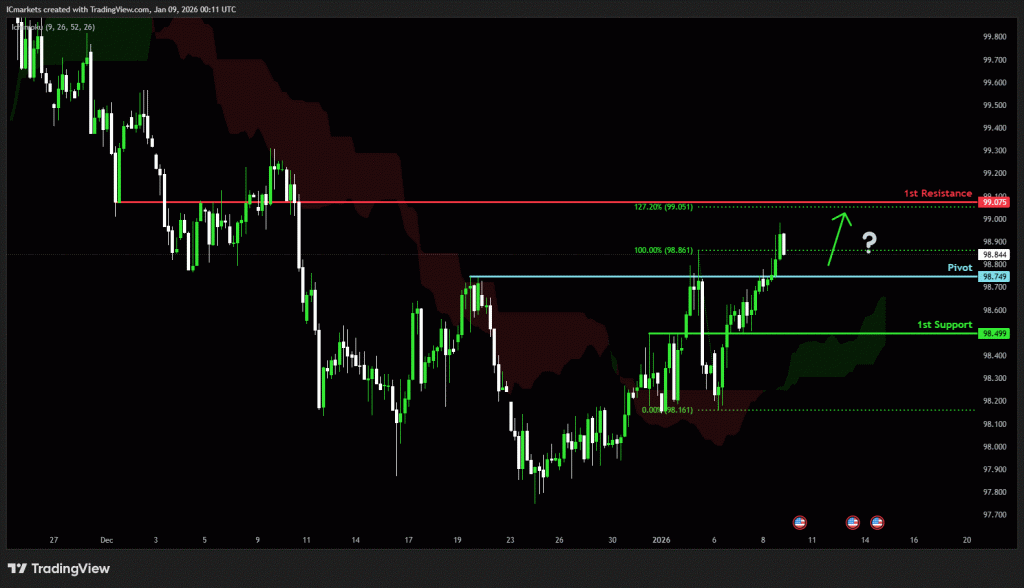 The price could see a short-term pullback toward the pivot before rising again toward the 1st resistance.