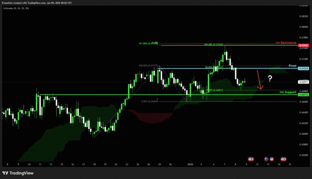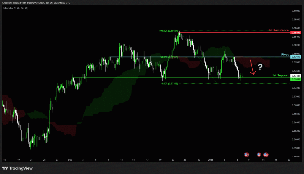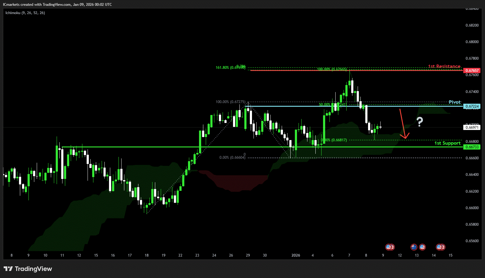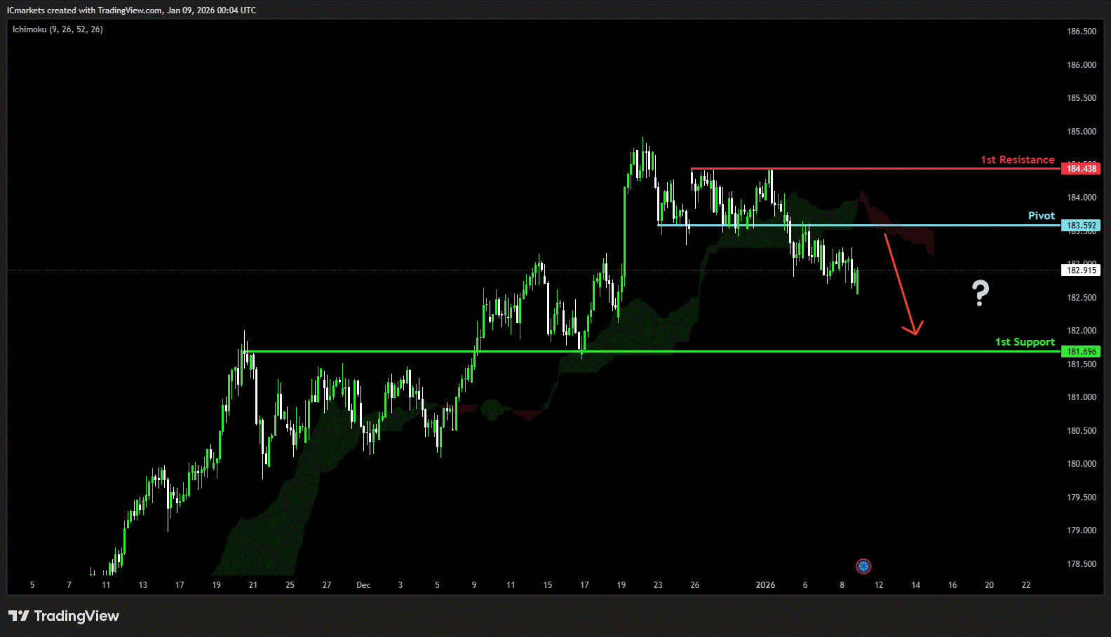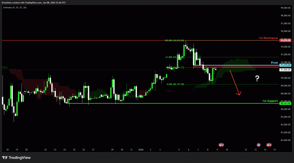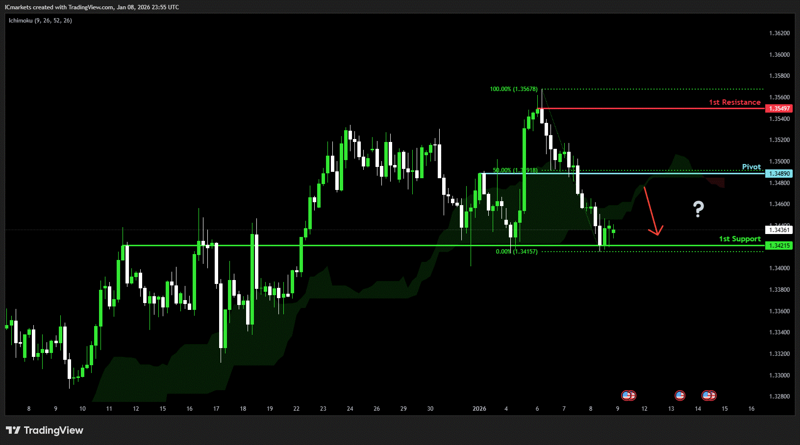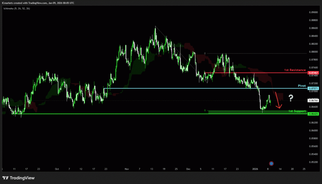 The price could see a short-term pullback toward the pivot before continuing its bearish move down toward the 1st support.