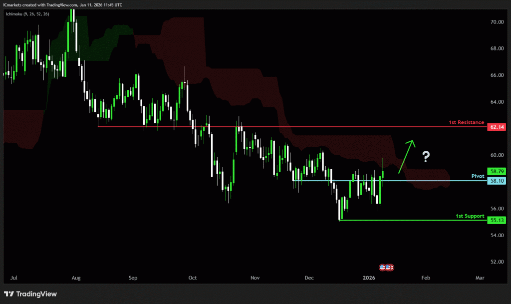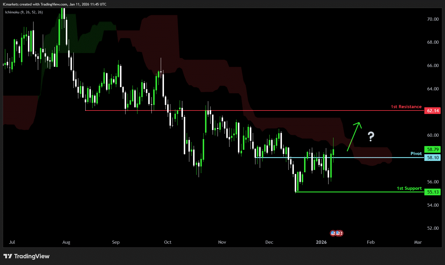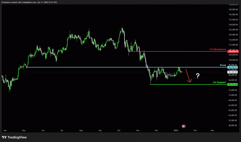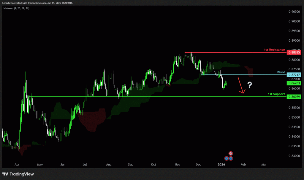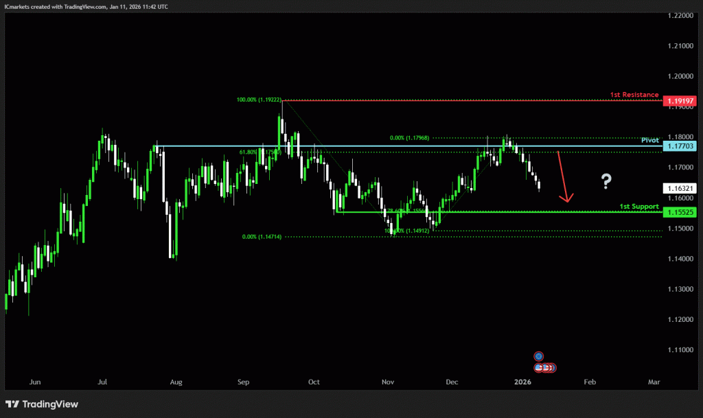 The price could see a short-term pullback toward the pivot before continuing its bearish move down toward the 1st support.