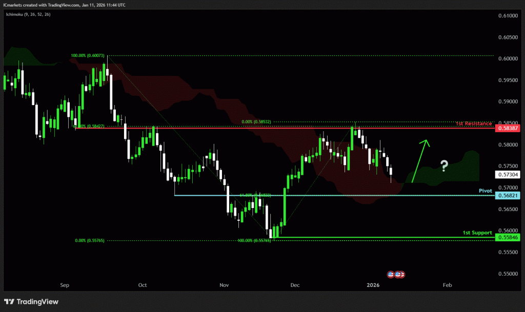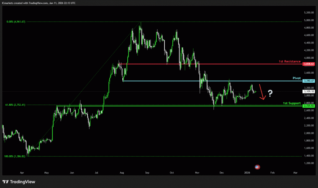 Supporting reasons: Identified as an overlap resistance that aligns closely with the 61.8% Fibonacci retracement, where selling pressures could intensify and potentially cap any upward retracement.