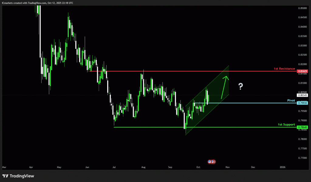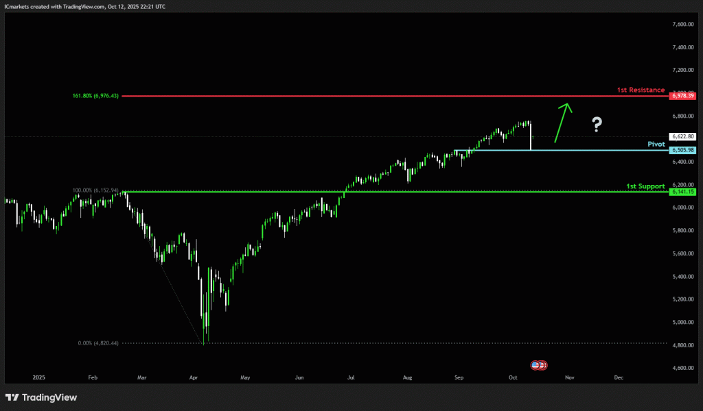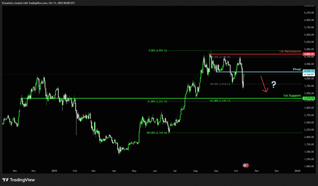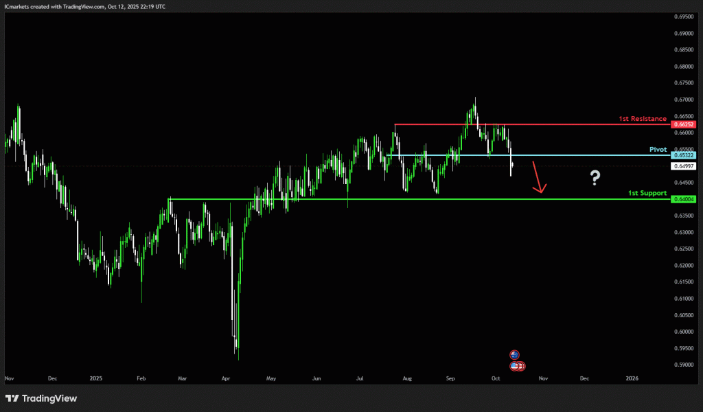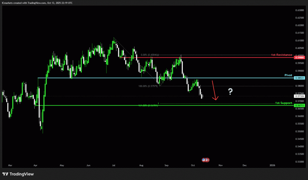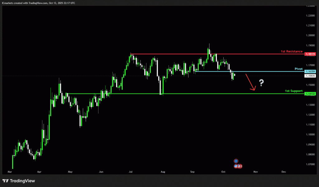 The price could see a short-term pullback toward the pivot before continuing its bearish move down toward the 1st support.
