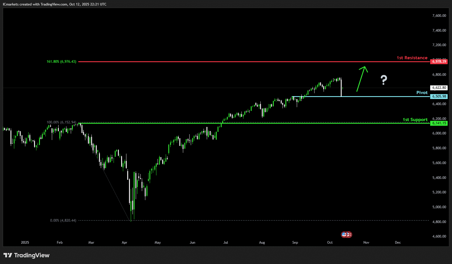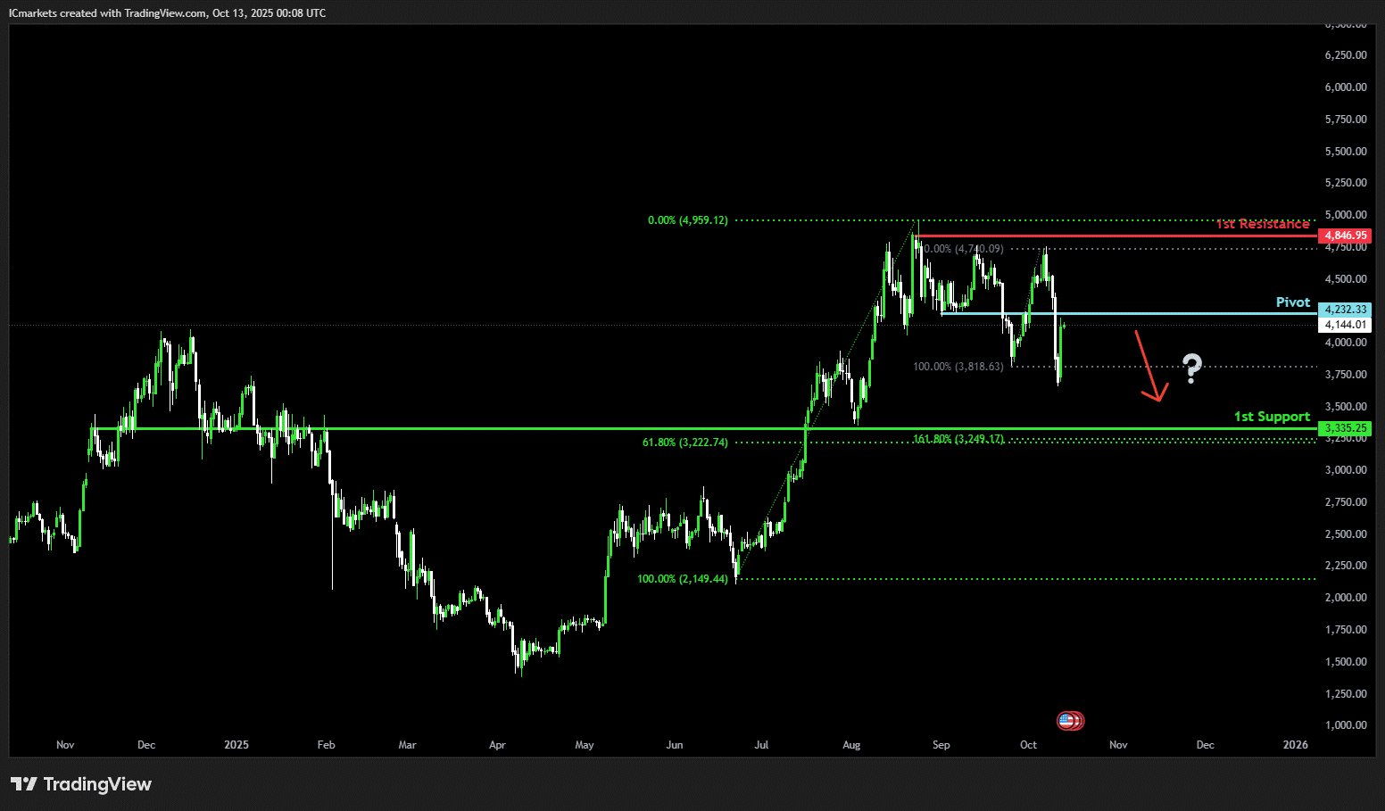 The price could see a short-term pullback toward the pivot before continuing its bearish move down toward the 1st support.