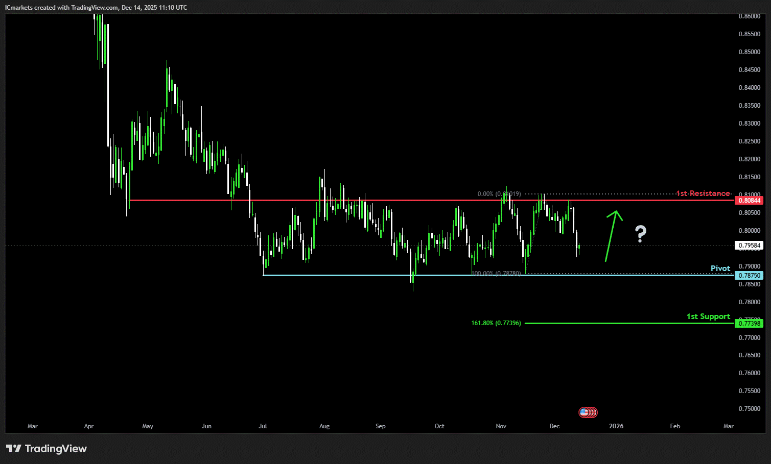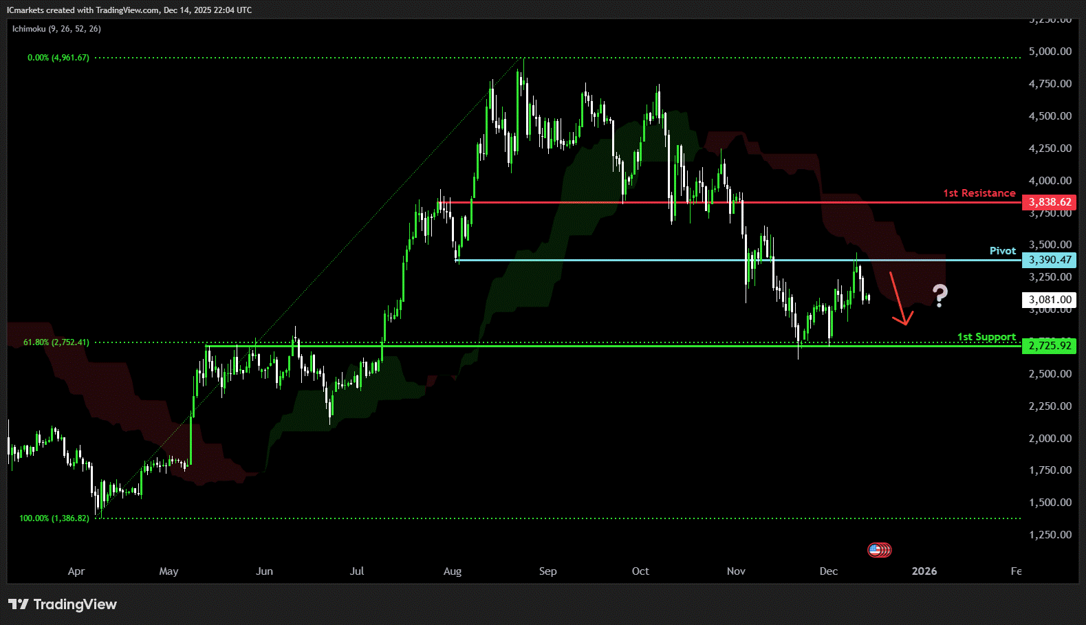 The price could see a short-term pullback toward the pivot before continuing its bearish move down toward the 1st support.