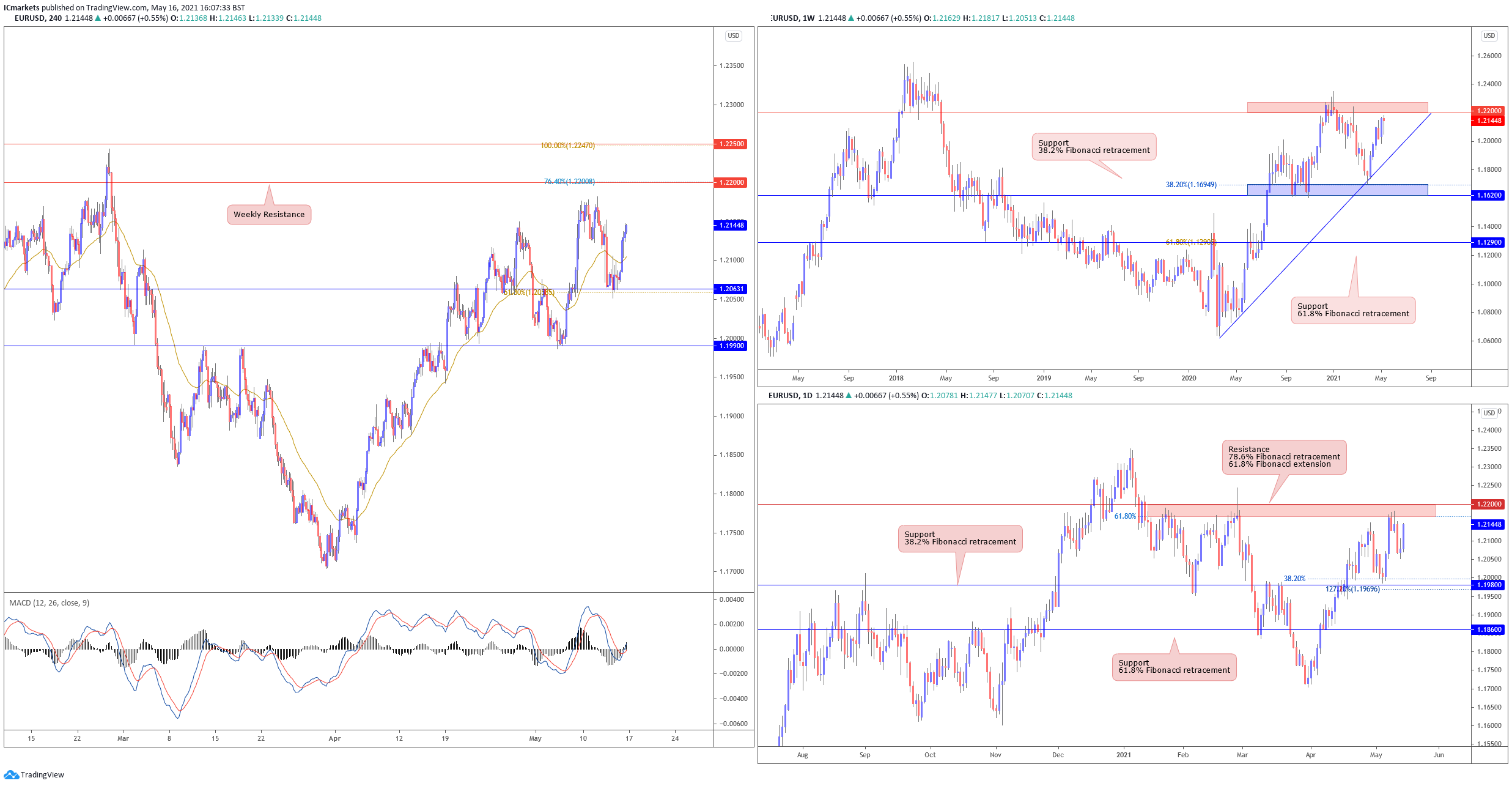 Looking at the weekly chart, we can see that prices are seeing further limited upside before it reaches our resistance area at 1.22000 – 1.22800. On the daily chart, prices are near our resistance area at 1.2200 where we could see a limited upside here.