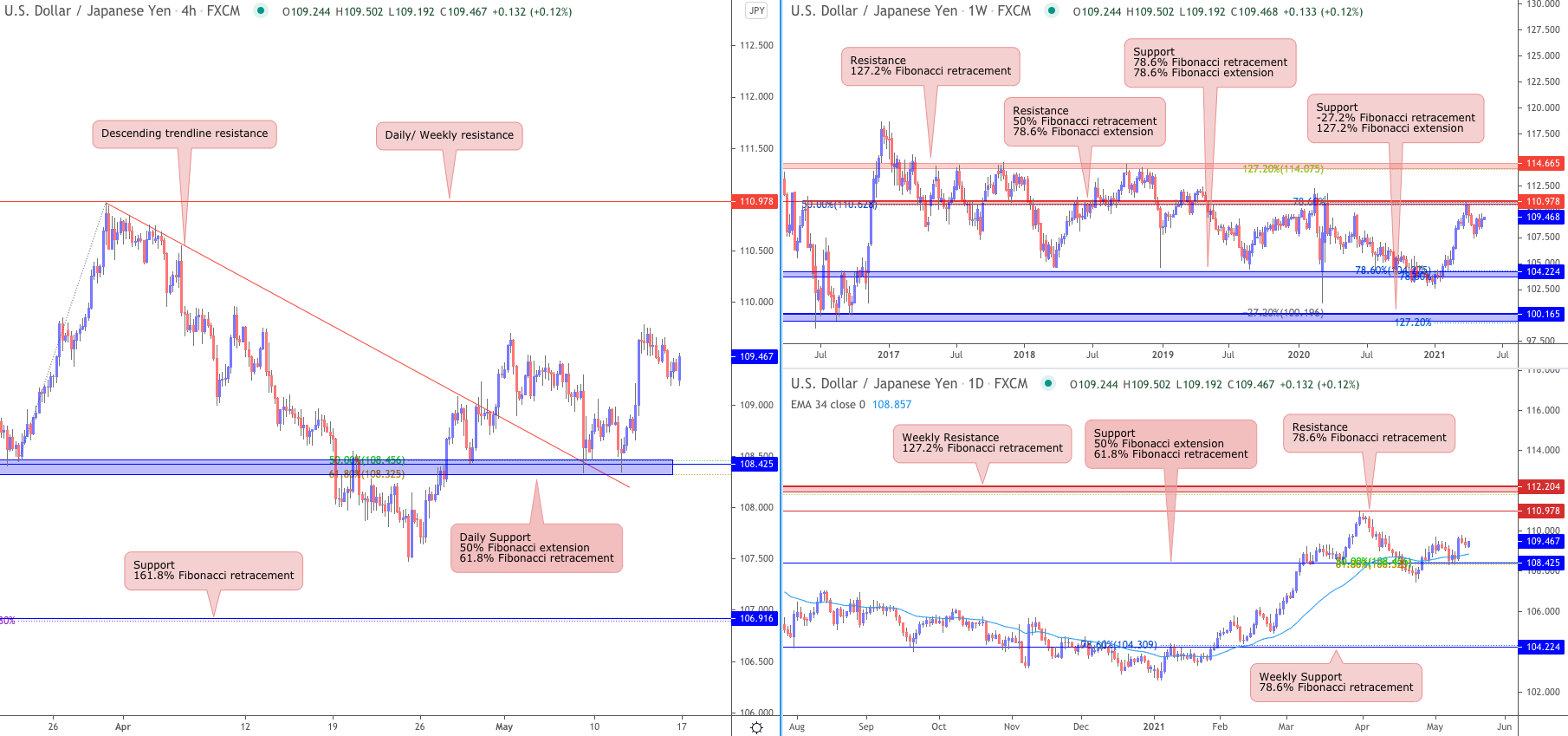 - On the H4, prices might push up towards 110.978 daily resistance level