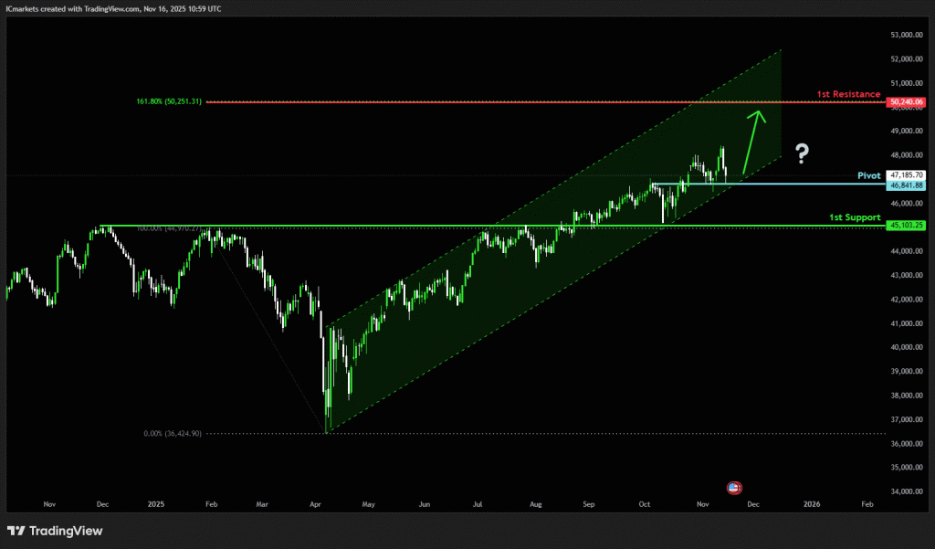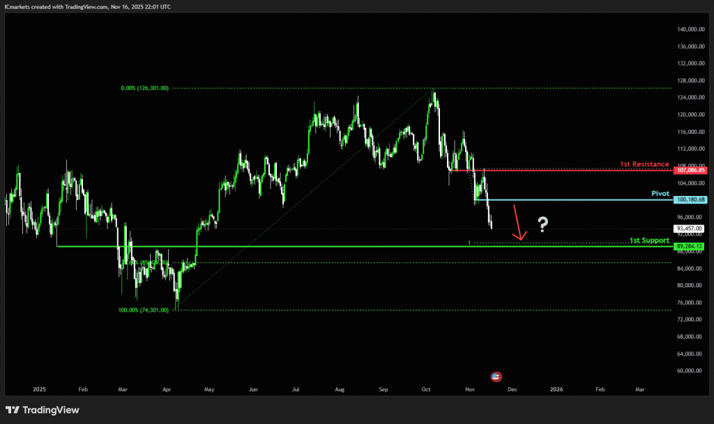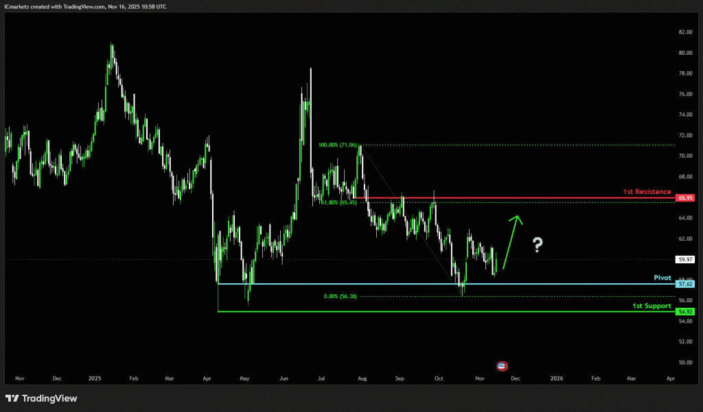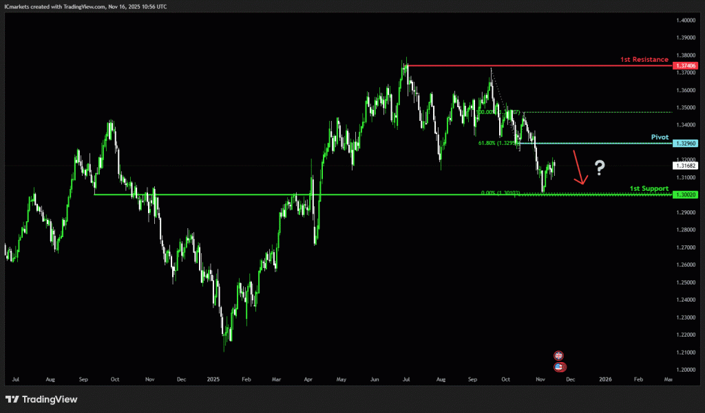 The price could see a short-term pullback toward the pivot before continuing its bearish move down toward the 1st support.