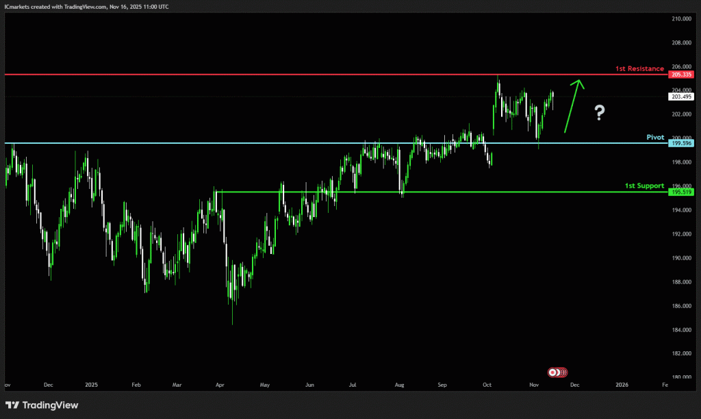 The price could trigger a bearish breakout of the pivot before continuing its bearish move down toward the 1st support.
