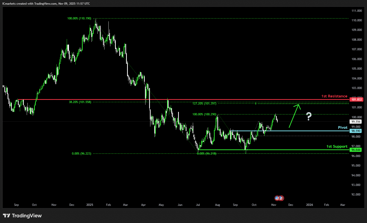 The price could trigger a bearish breakout of the pivot before continuing its bearish move down toward the 1st support.