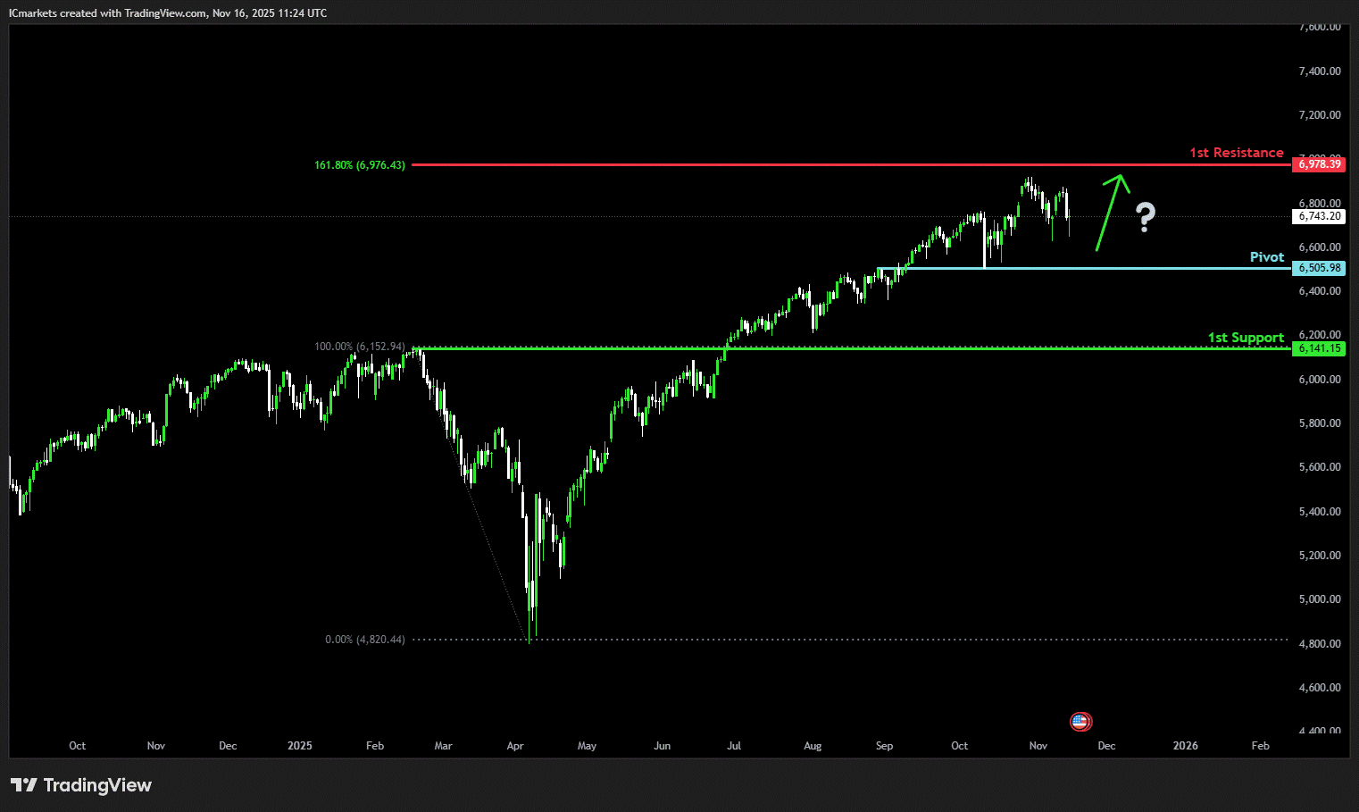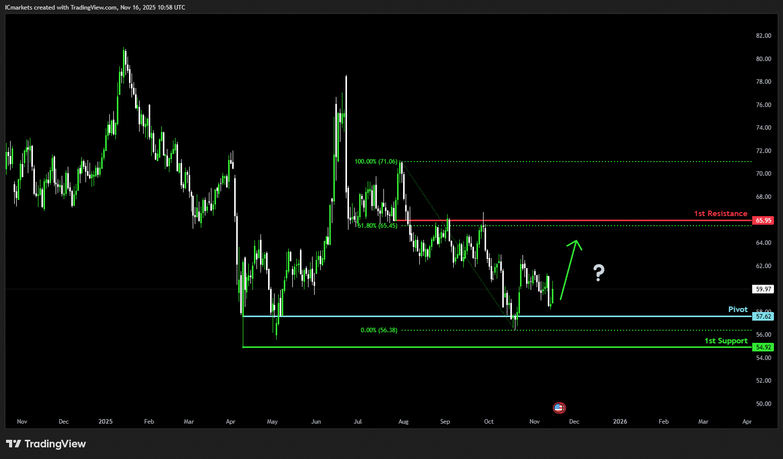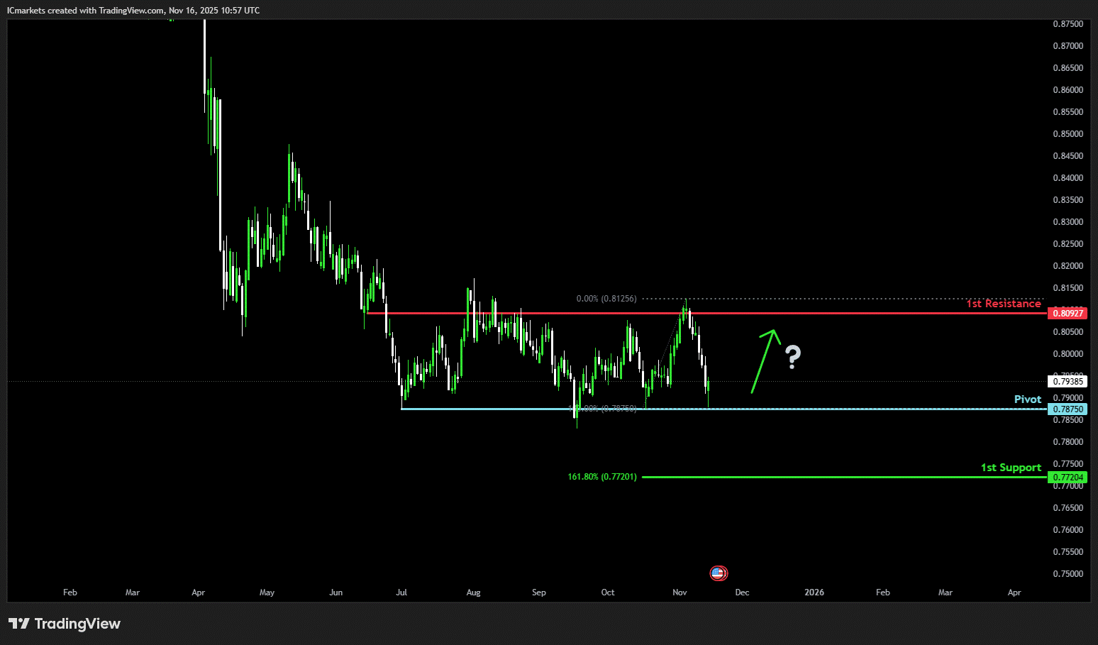 The price could see a short-term pullback toward the pivot before continuing its bearish move down toward the 1st support.