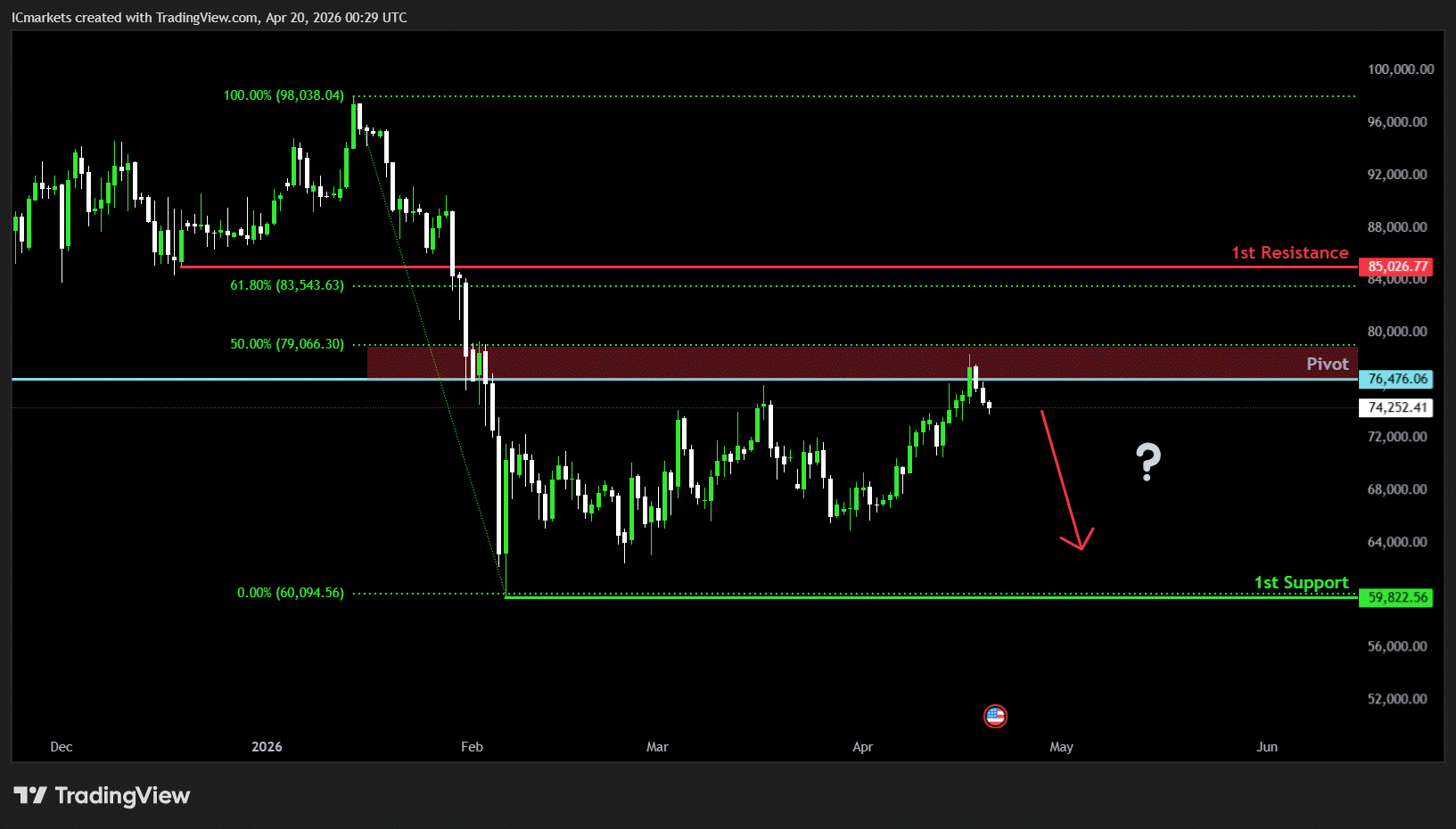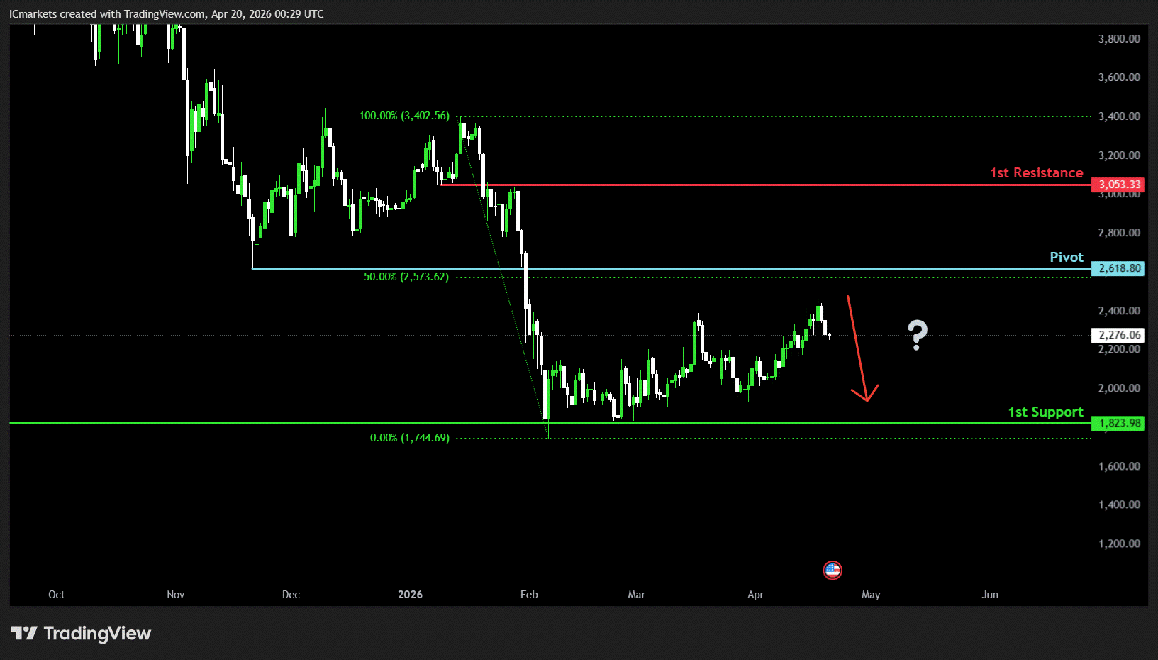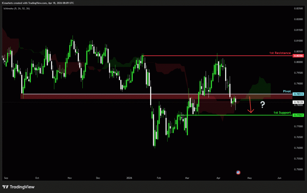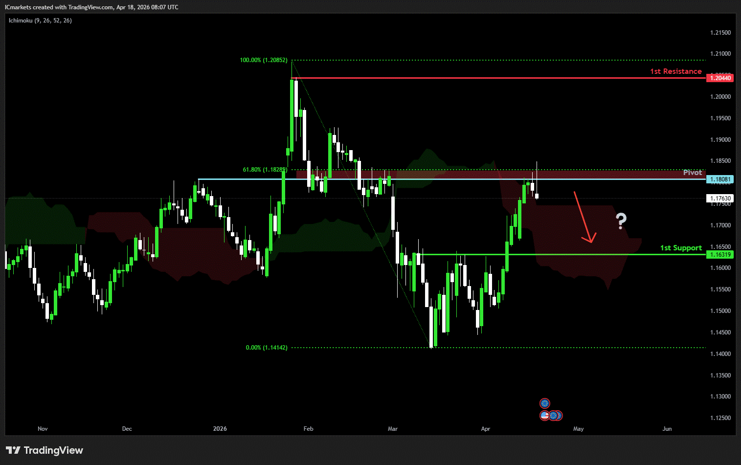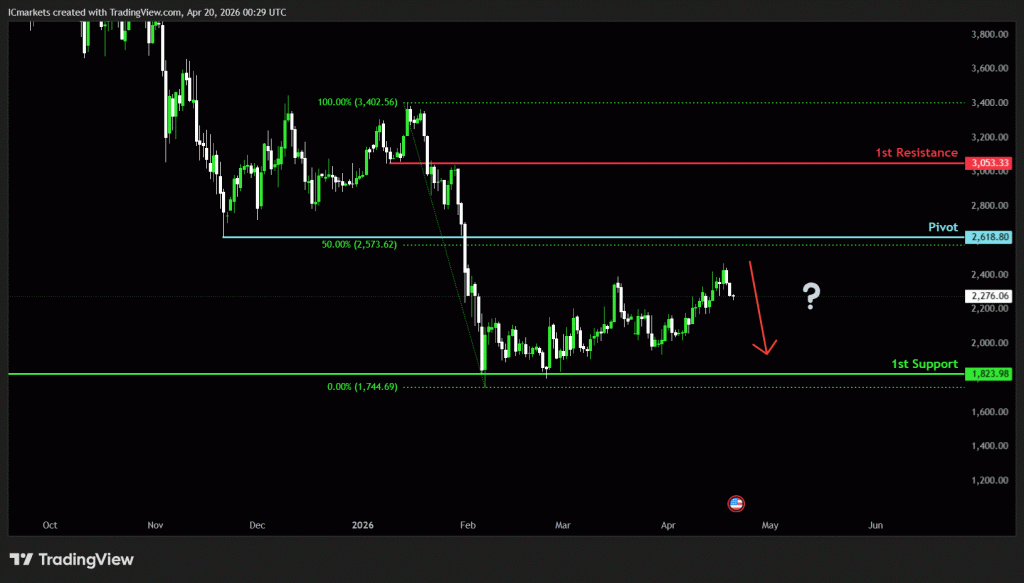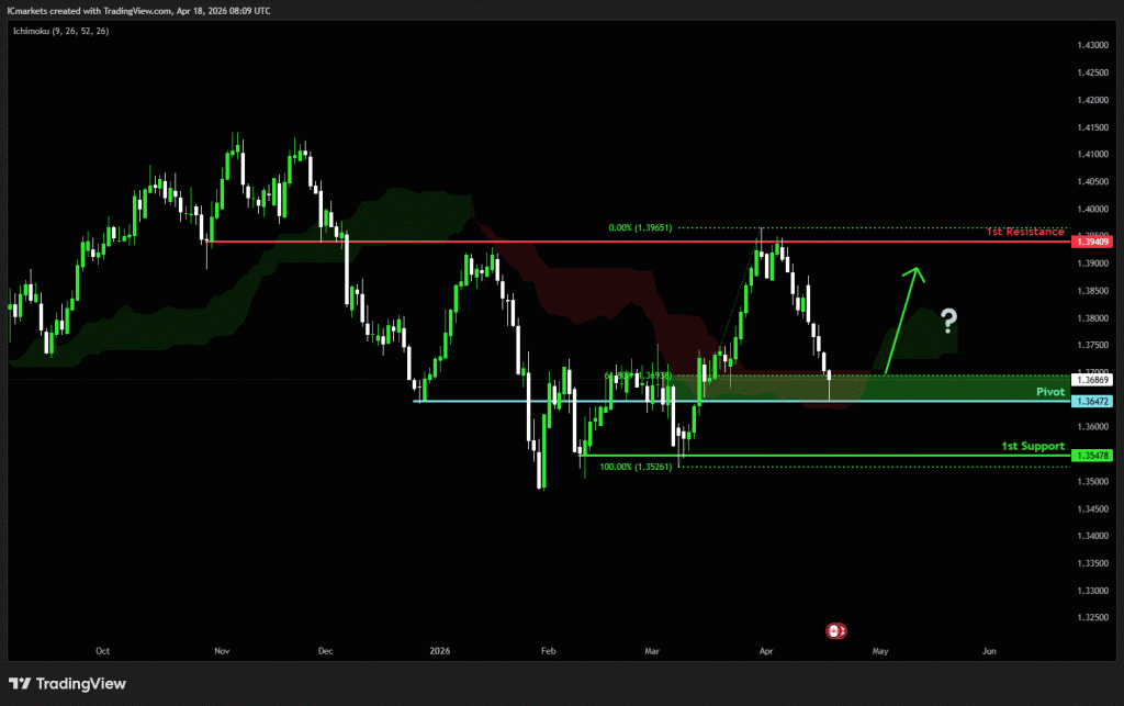 The price could see a short-term pullback toward the pivot before continuing its bearish move down toward the 1st support.