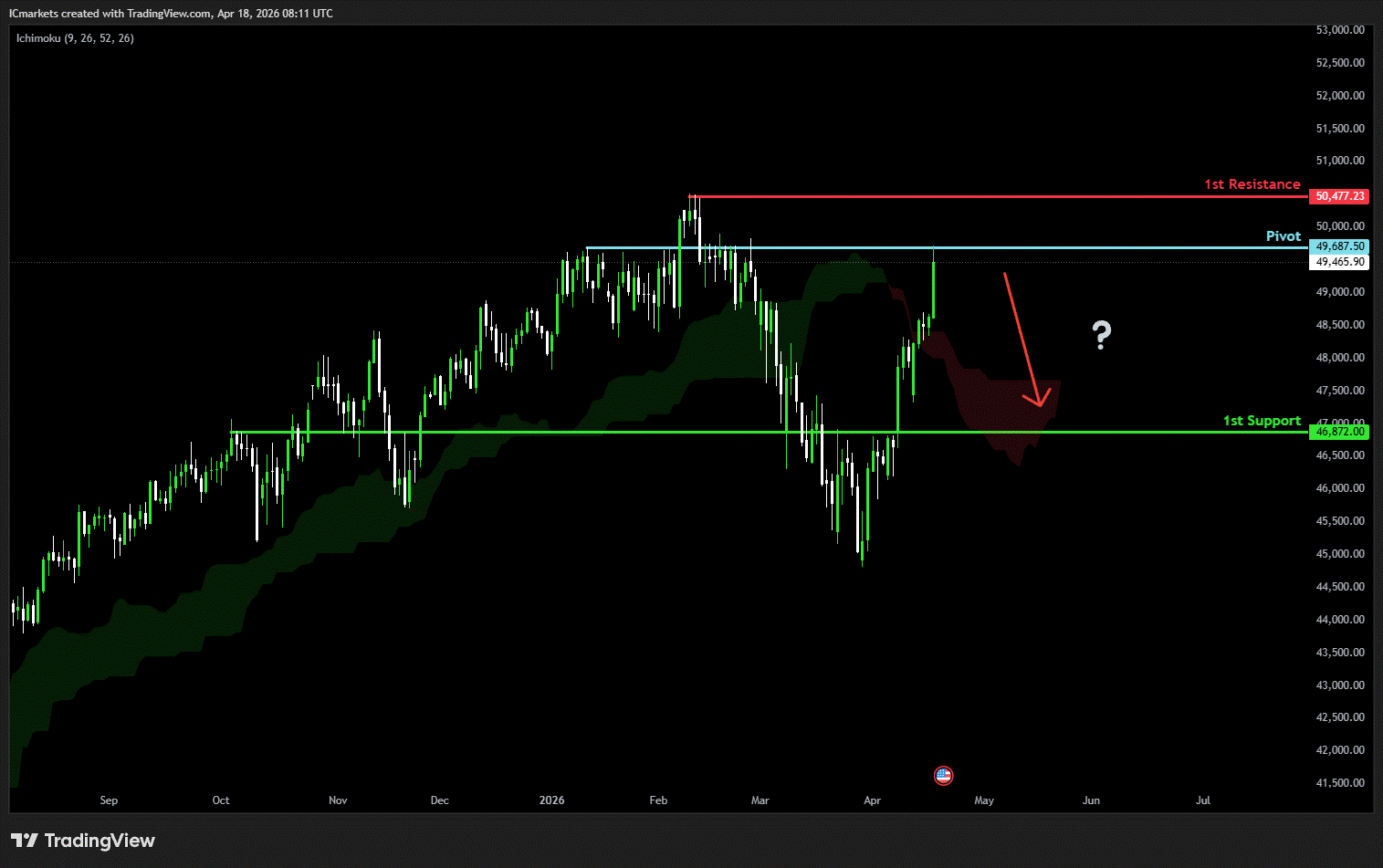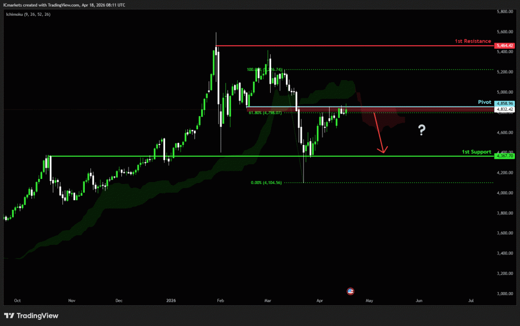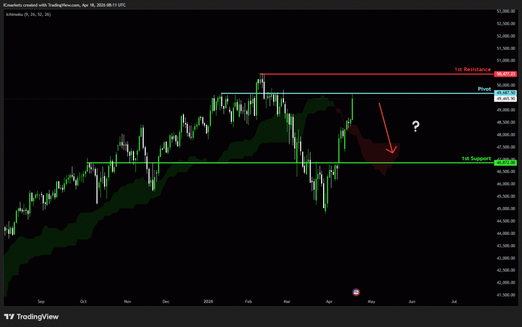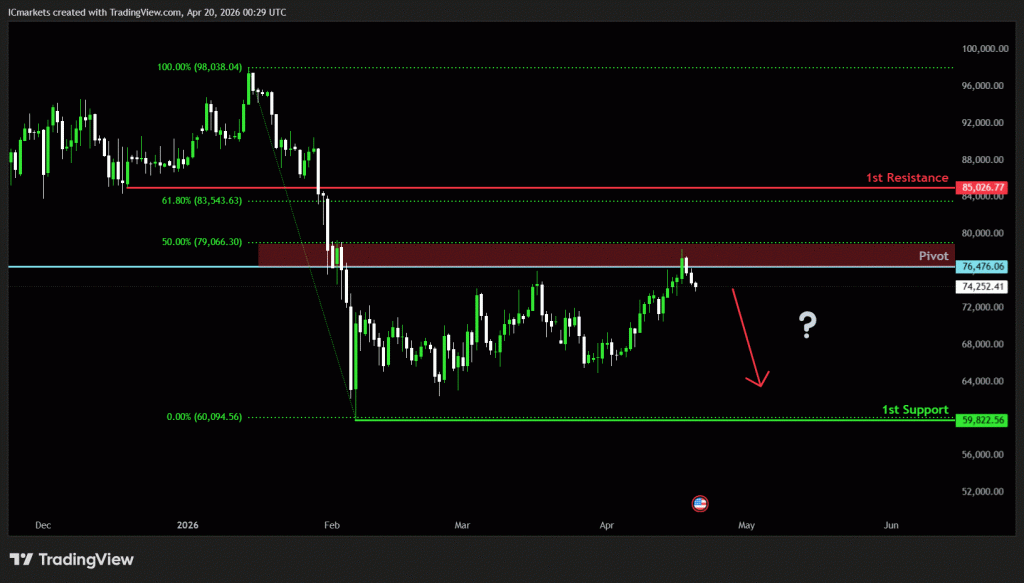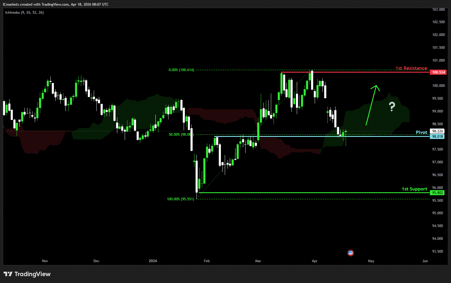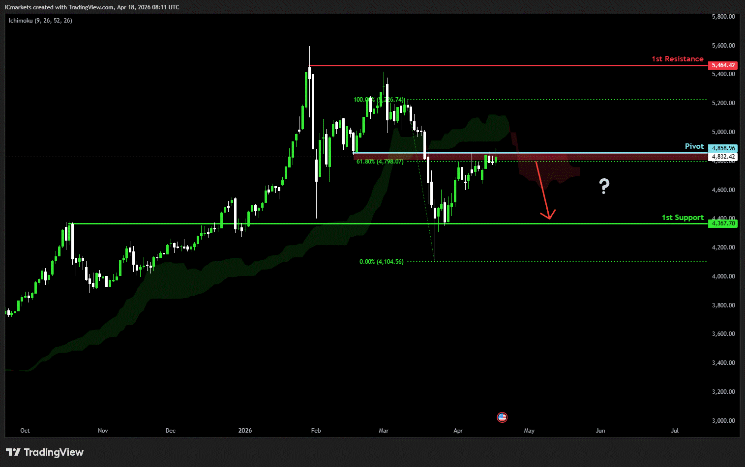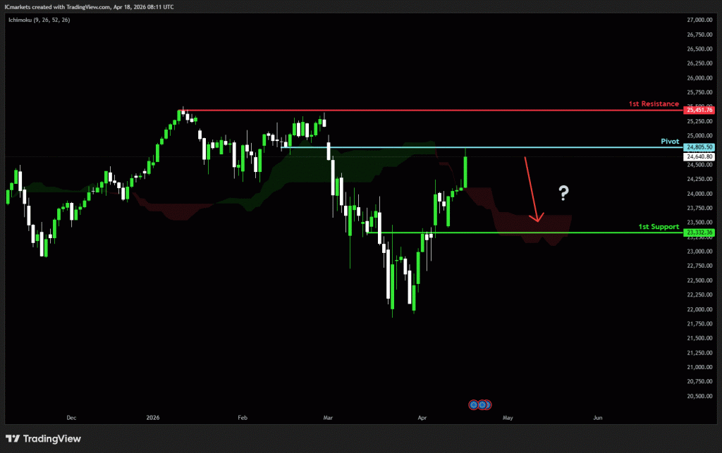 The price could see a short-term pullback toward the pivot before continuing its bearish move down toward the 1st support.