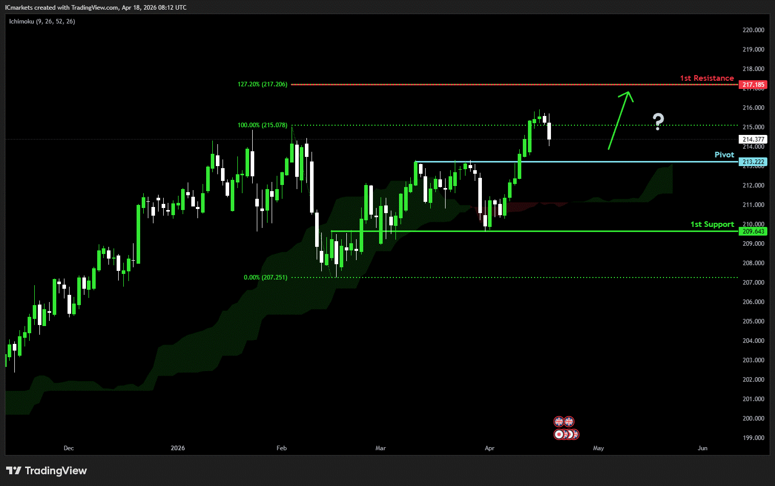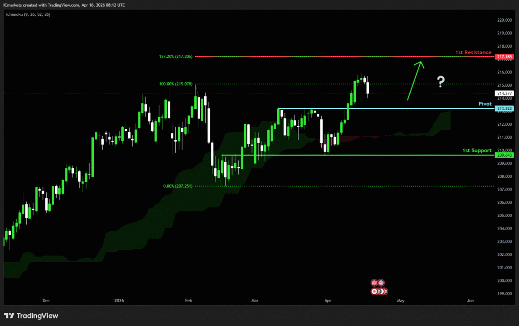 The price could see a short-term pullback toward the pivot before rising again toward the 1st resistance.
