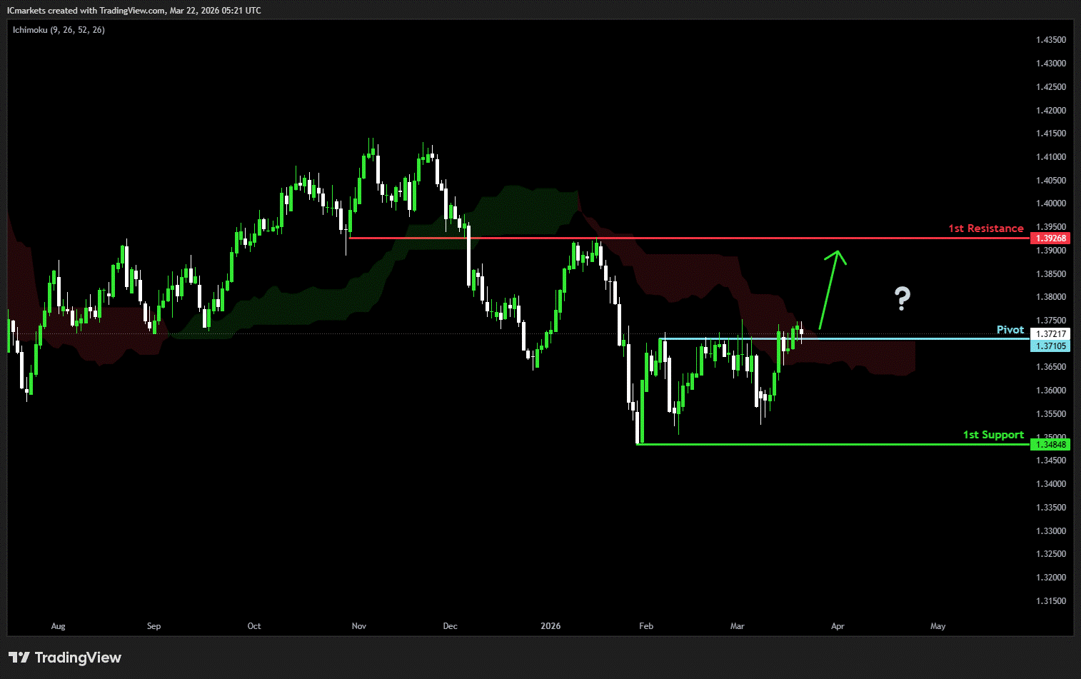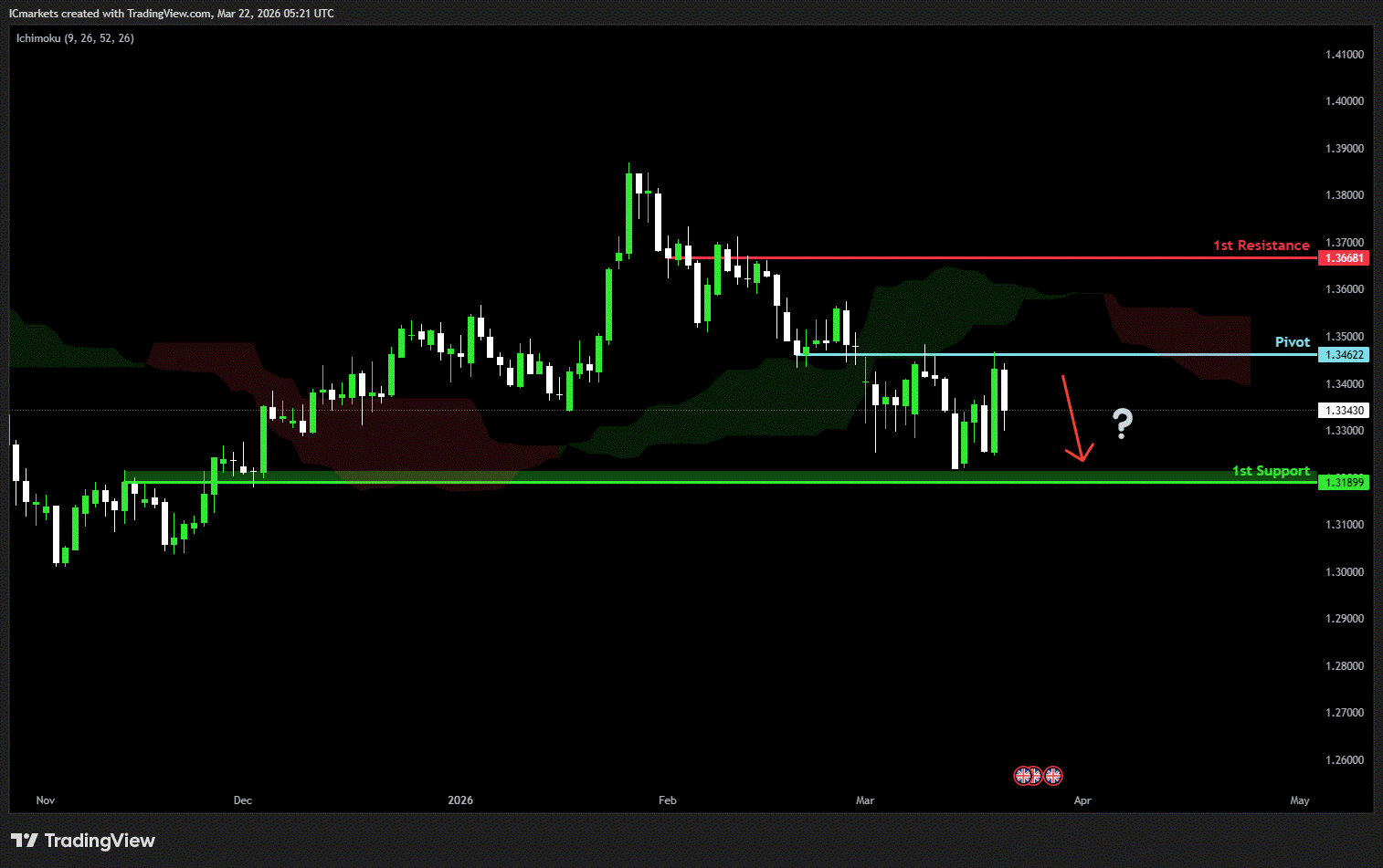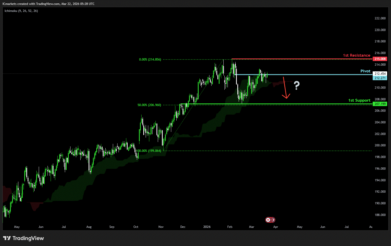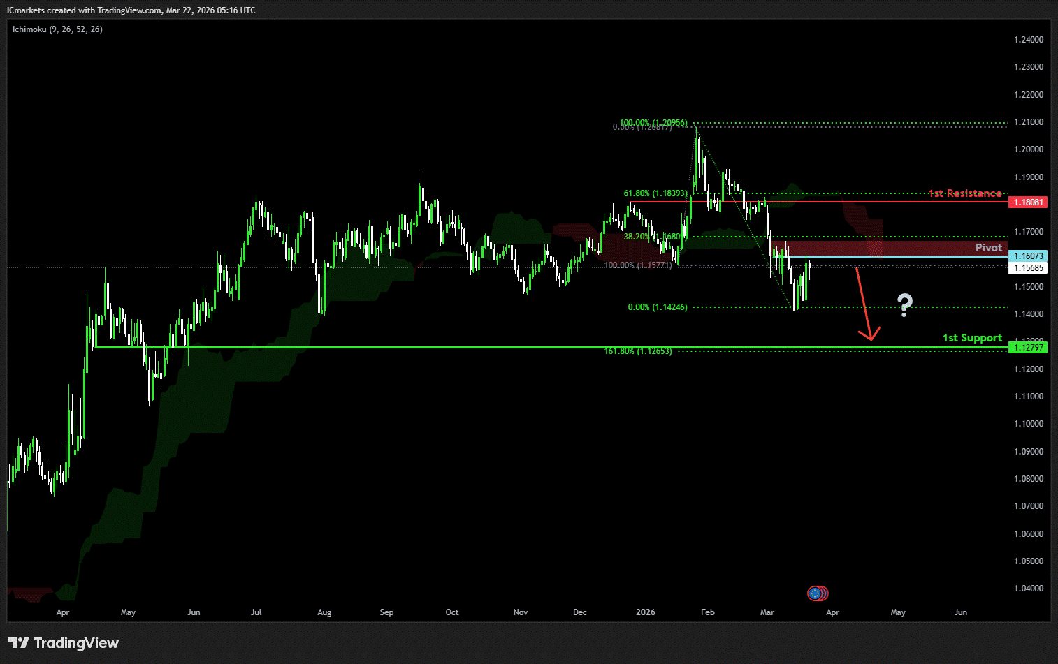 The price could see a short-term pullback toward the pivot before continuing its bearish move down toward the 1st support.