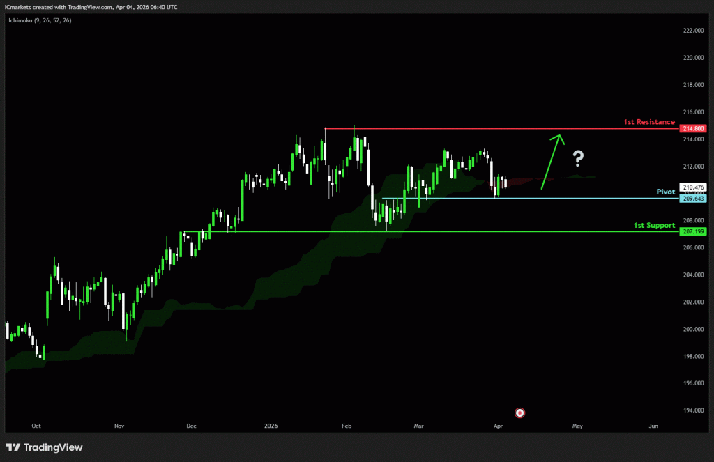 The price could make a short-term pullback toward the pivot before rising again toward the 1st resistance