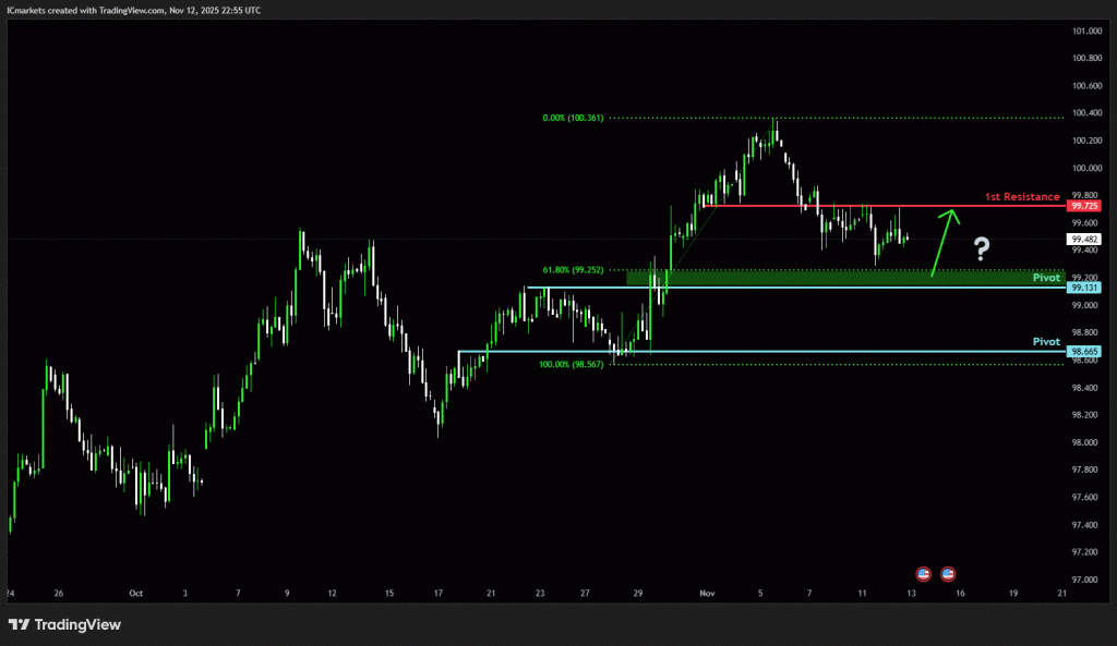 Supporting reasons: Identified as a pullback support that aligns closely with the 61.8% Fibonacci retracement, where renewed buying pressure could emerge to push the price higher.