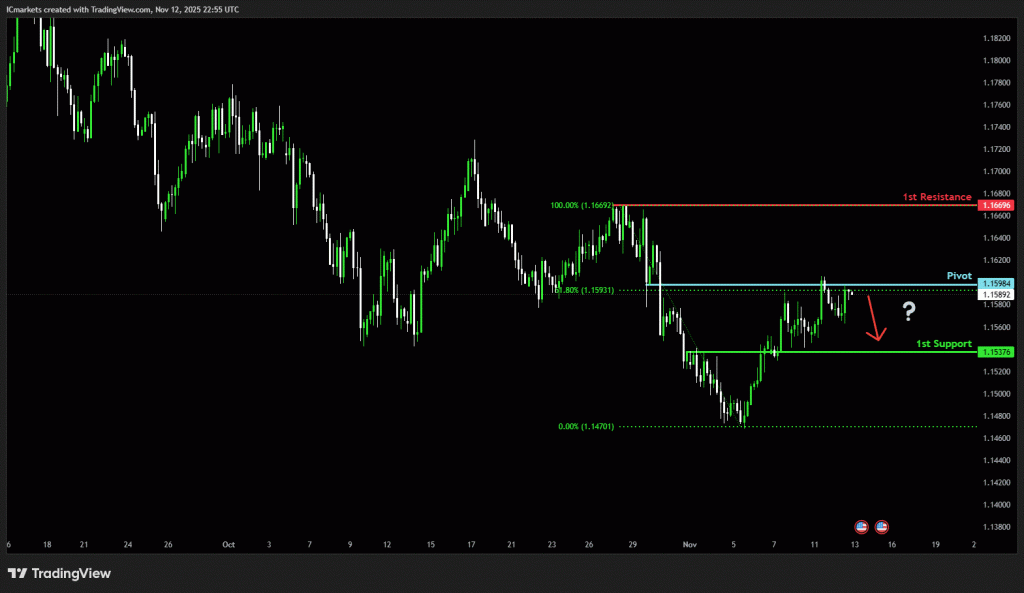 The price could see a short-term pullback toward the pivot before continuing its bearish move down toward the 1st support.