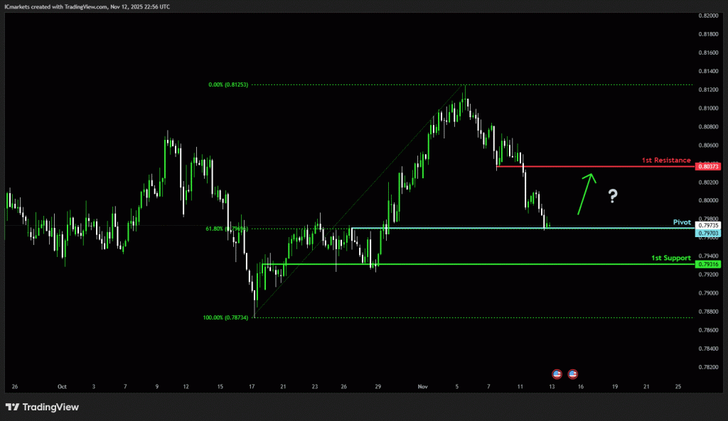 Supporting reasons: Identified as a pullback support that aligns with the 61.8% Fibonacci retracement, where renewed buying pressure could emerge to push the price higher.