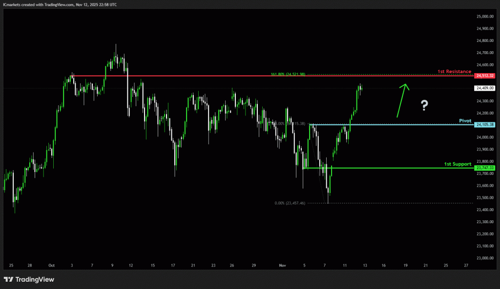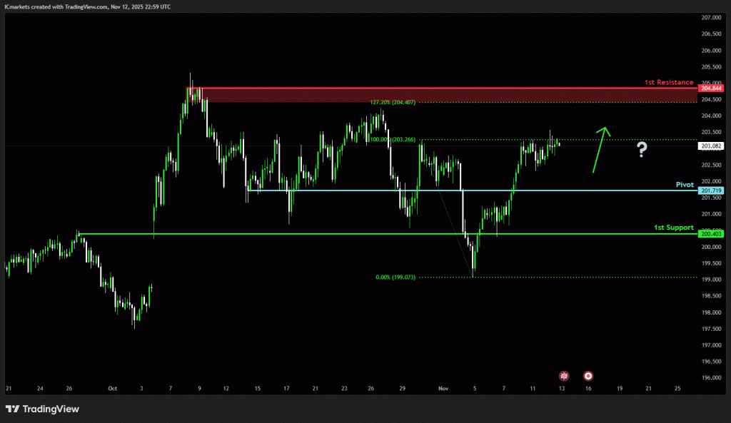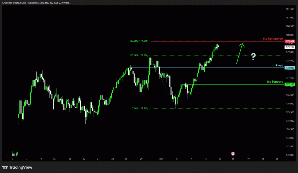 The price could see a short-term pullback toward the pivot before rising again toward the 1st resistance.