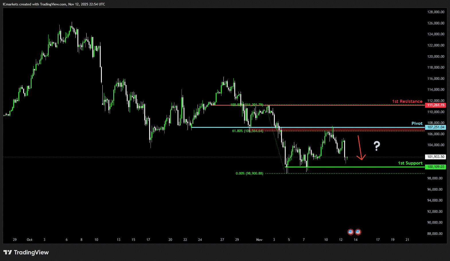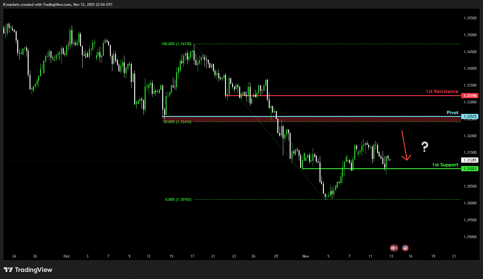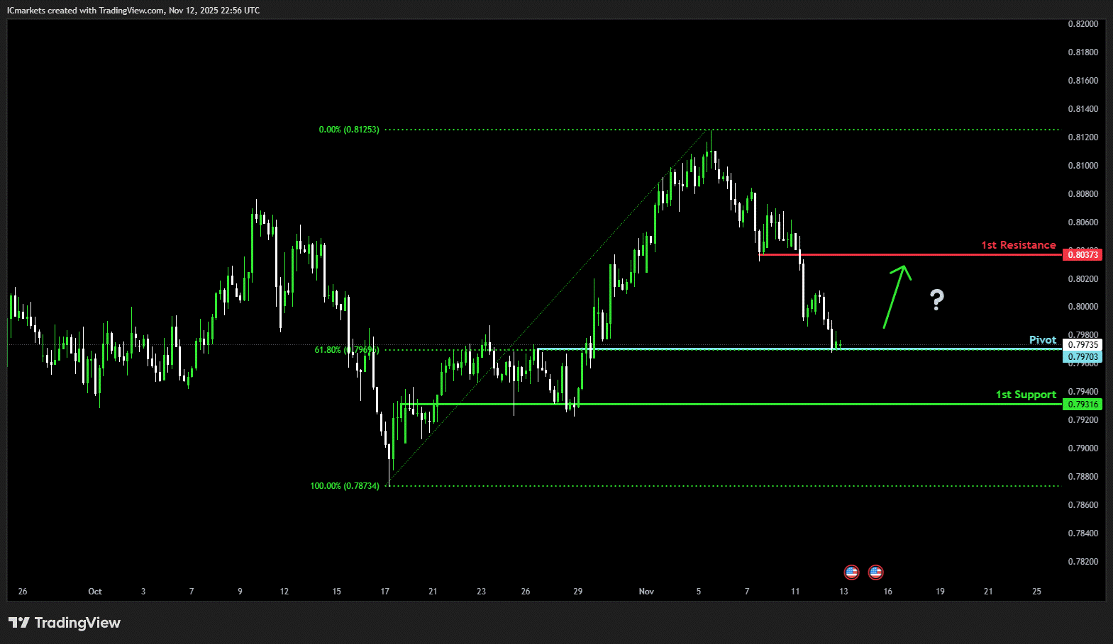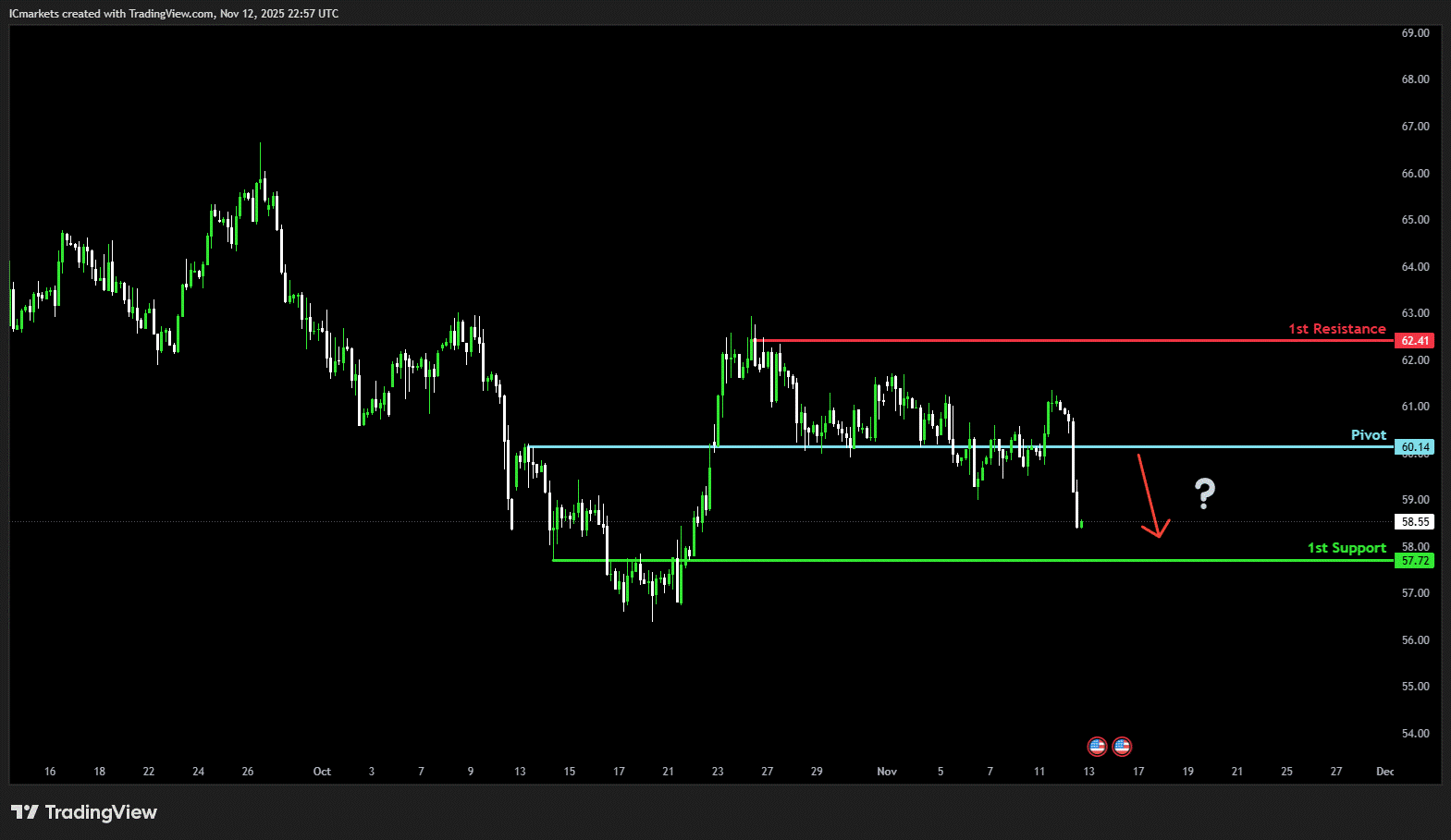 The price could see a short-term pullback toward the pivot before continuing its bearish move down toward the 1st support.