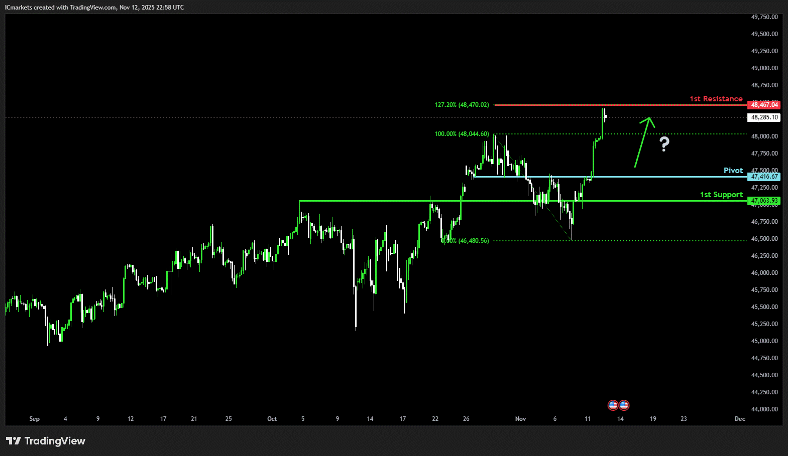 The price could see a short-term pullback toward the pivot before rising again toward the 1st resistance.