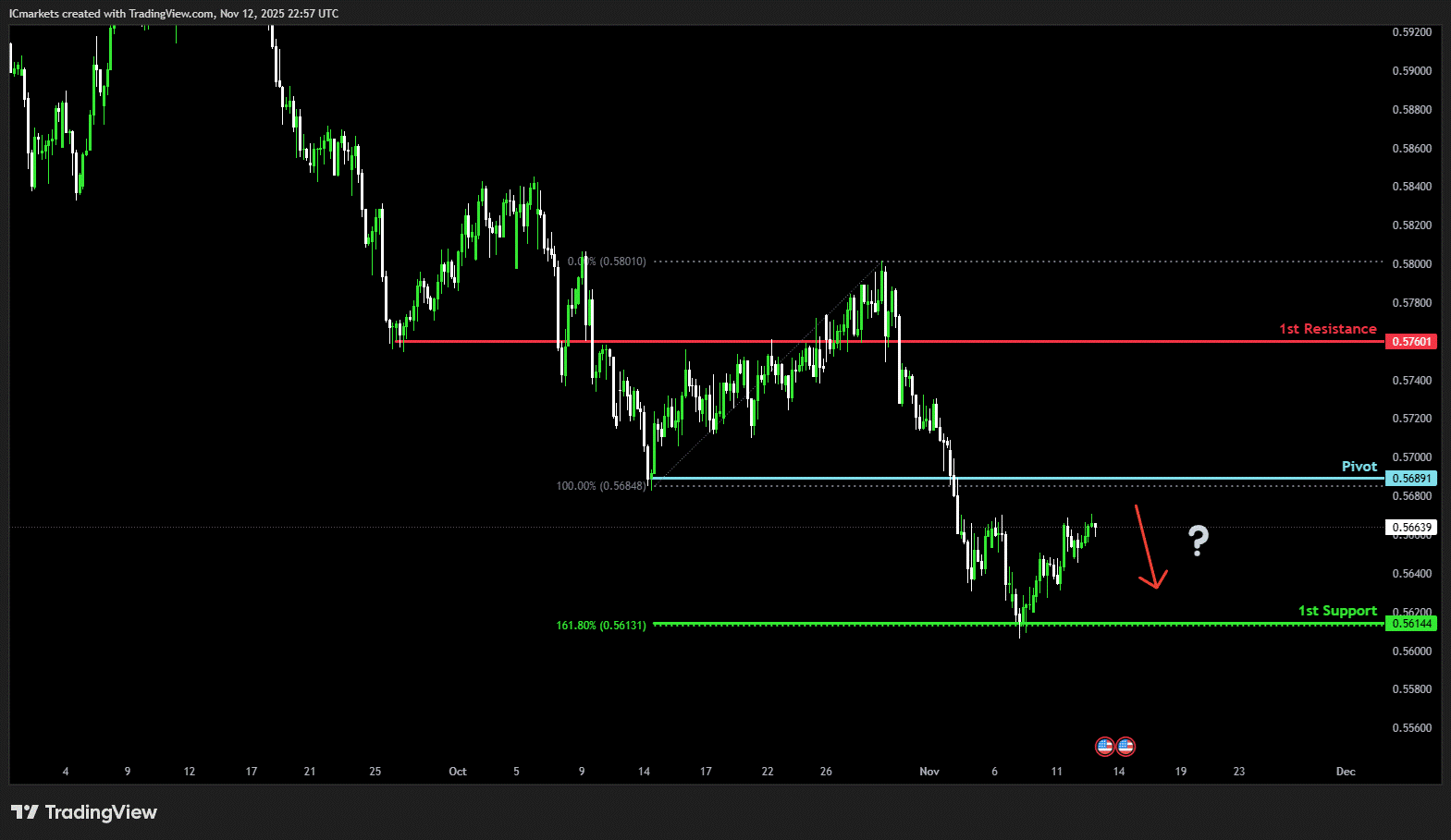 Supporting reasons: Identified as an overlap resistance that aligns with the 61.8% Fibonacci retracement, where selling pressures could intensify and potentially cap any upward retracement
