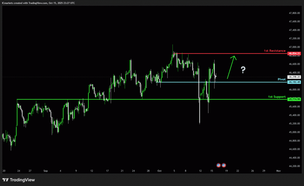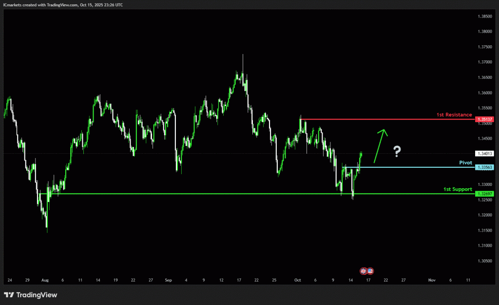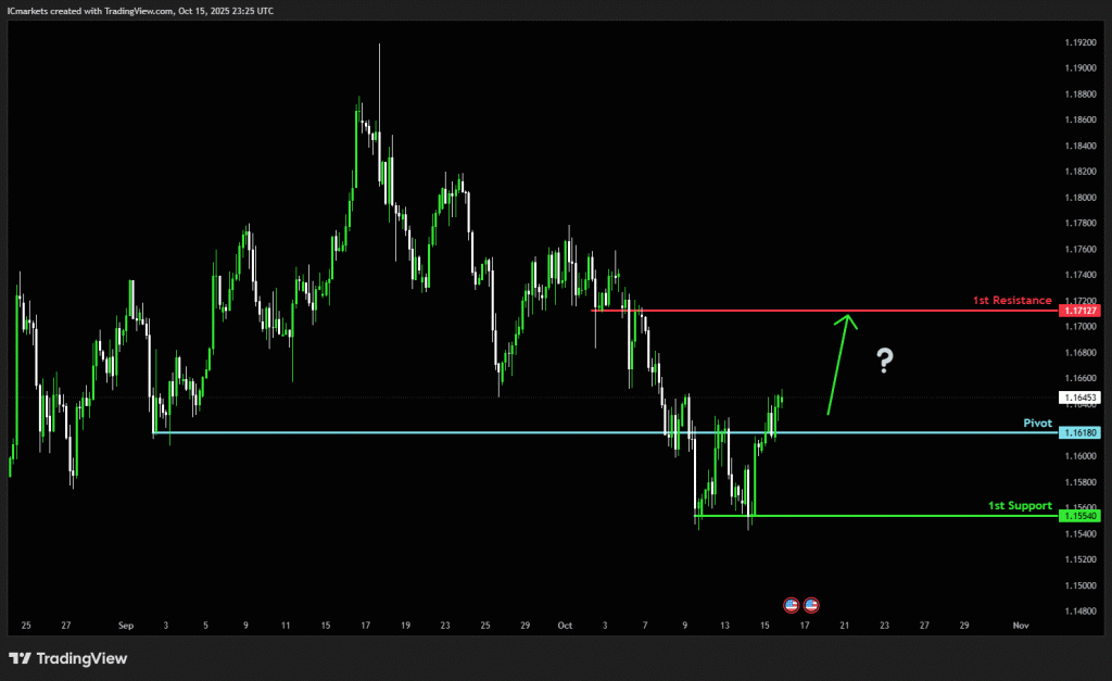 The price is demonstrating bullish momentum as it rebounds from the 1st support and establishes above the pivot, indicating a possible continuation to the upside toward the 1st resistance.