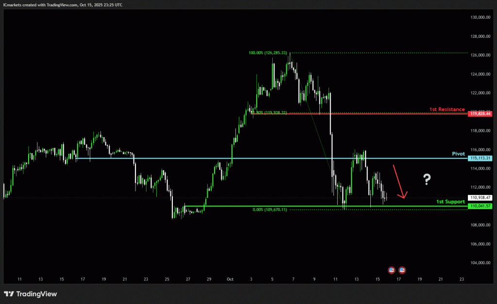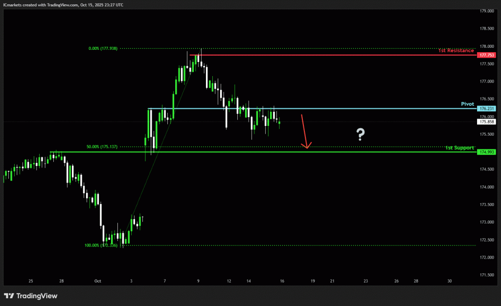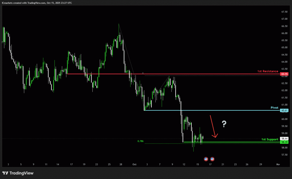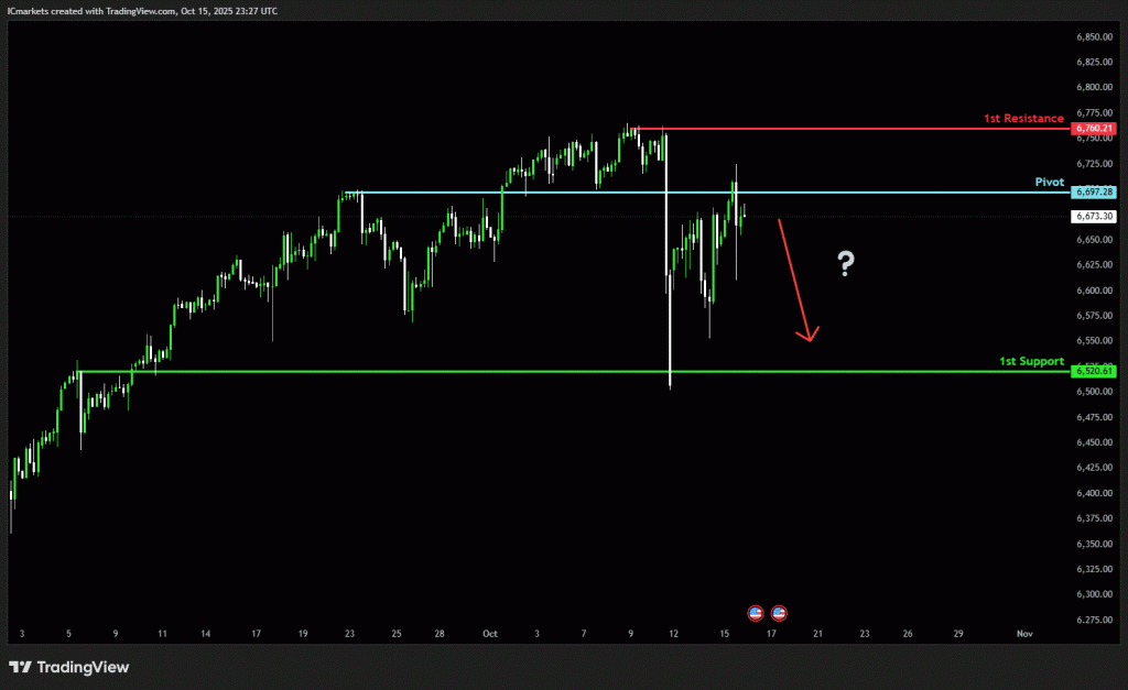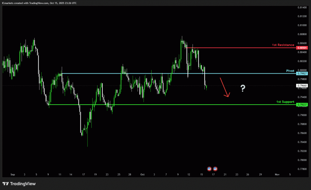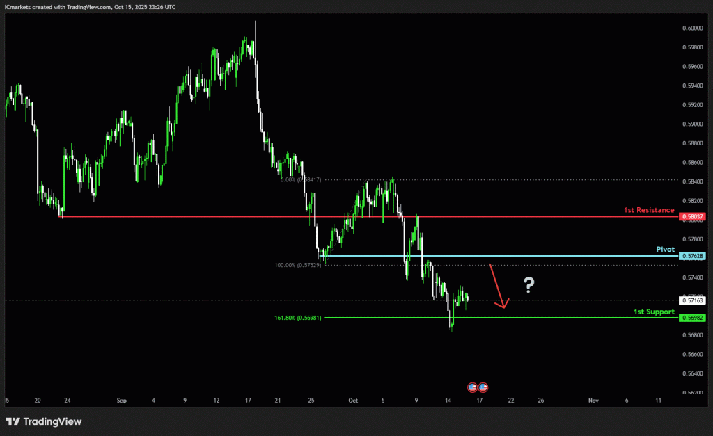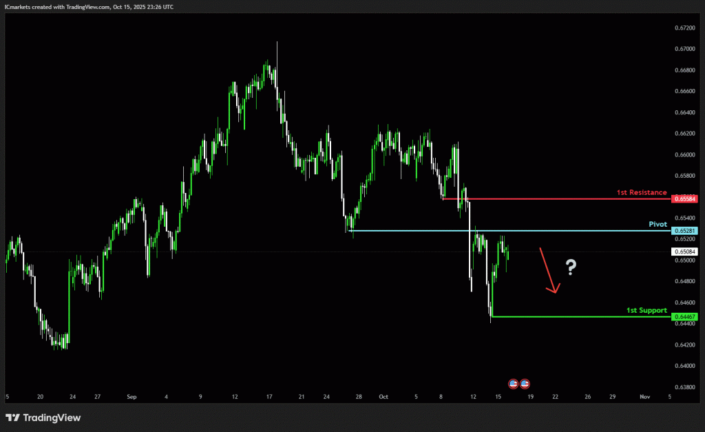 The price could see a short-term pullback toward the pivot before continuing its bearish move down toward the 1st support.