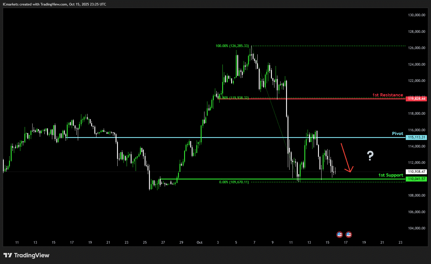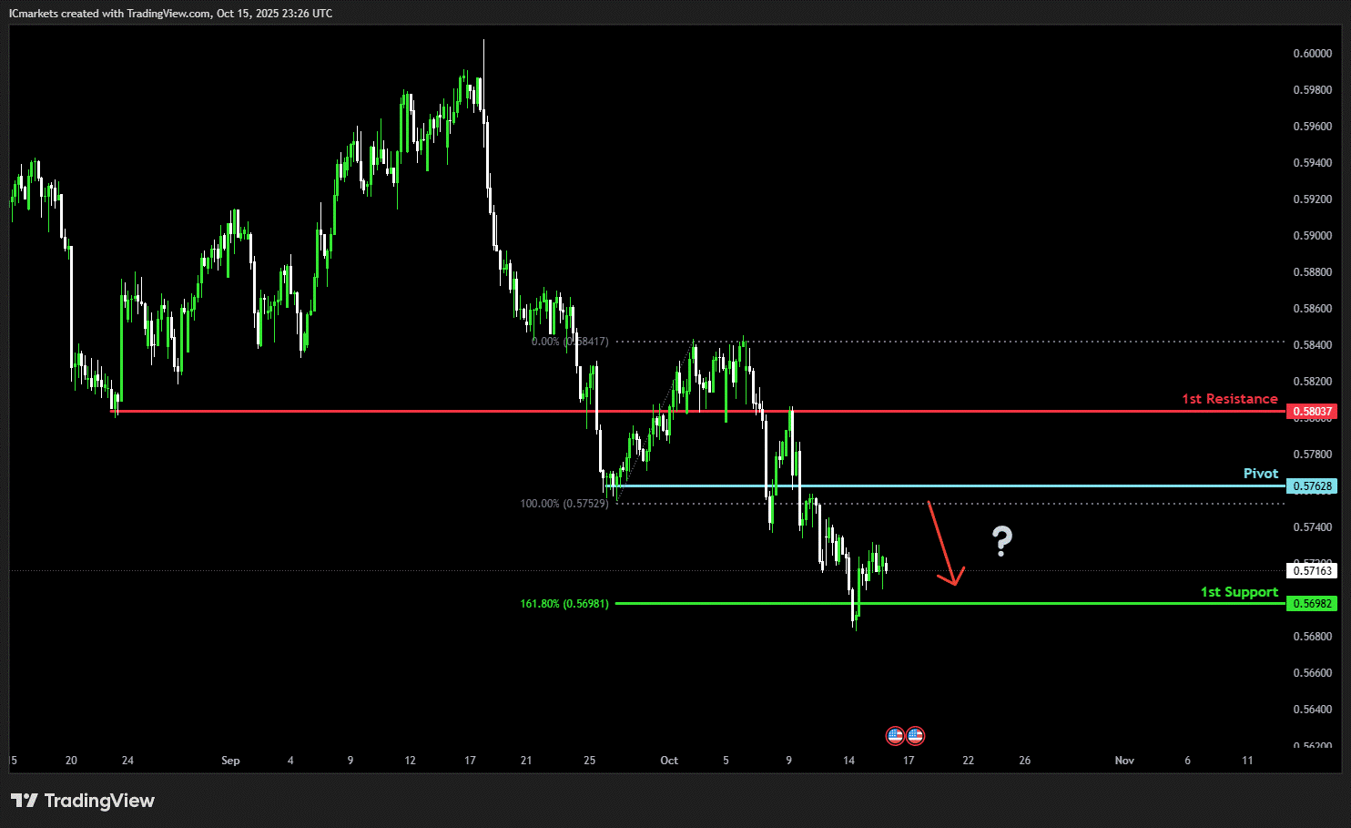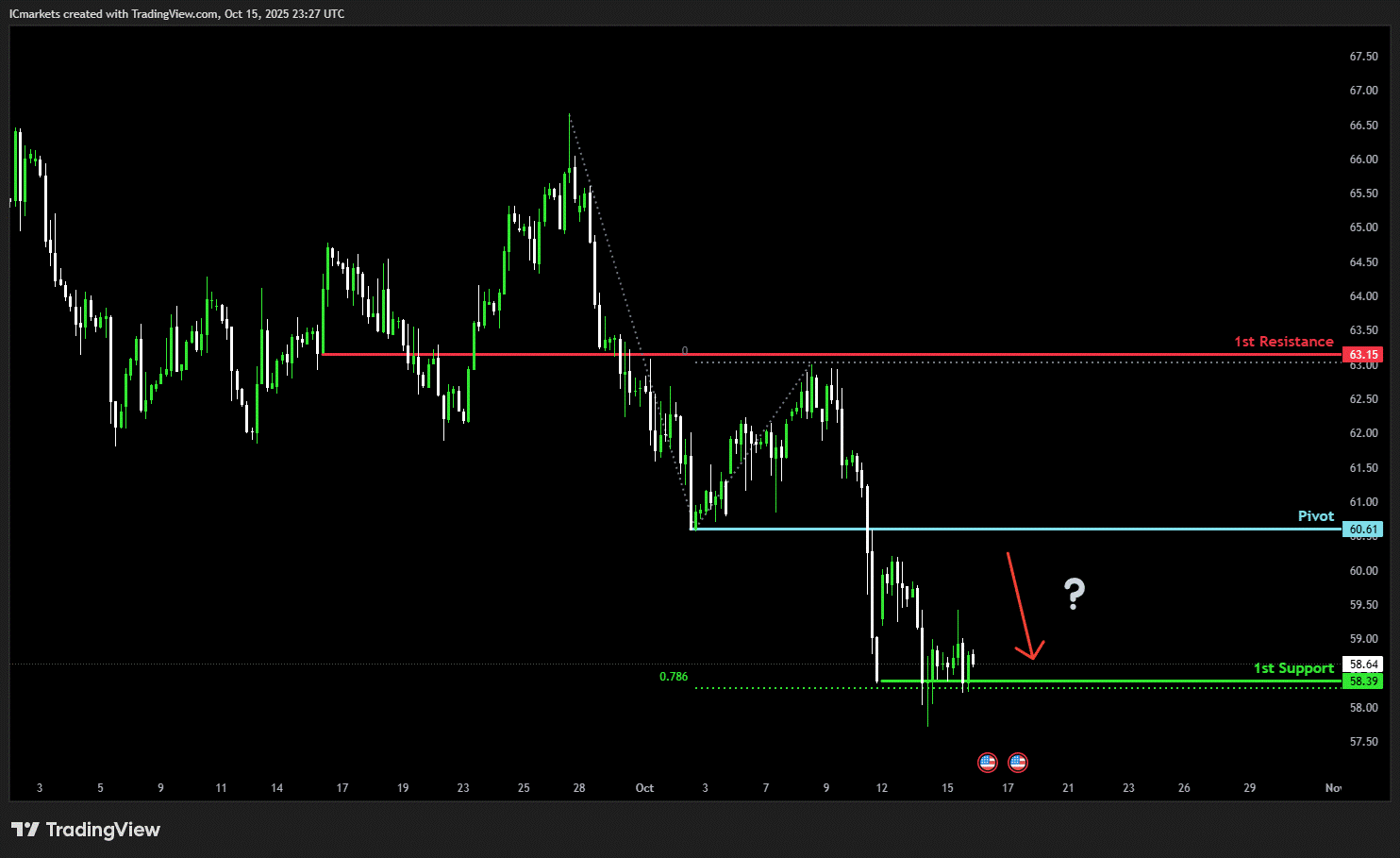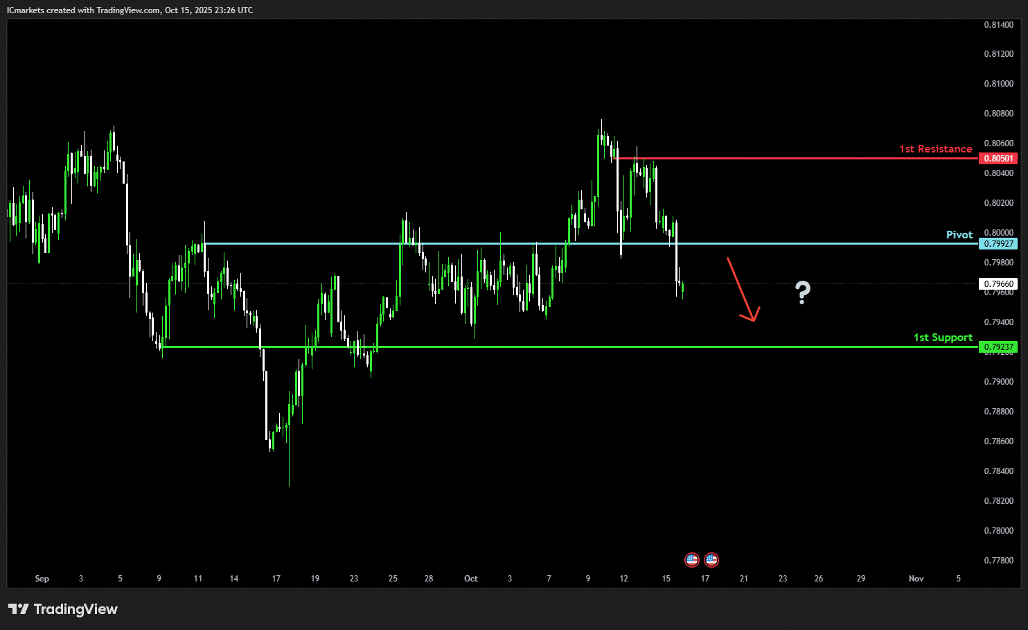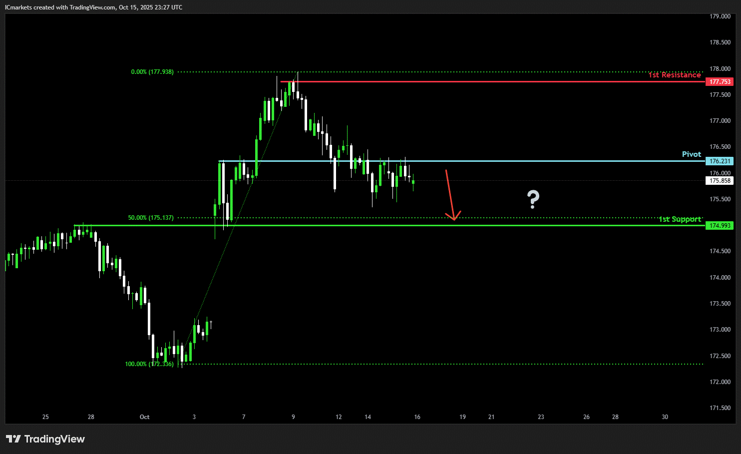 The price could see a short-term pullback toward the pivot before continuing its bearish move down toward the 1st support.
