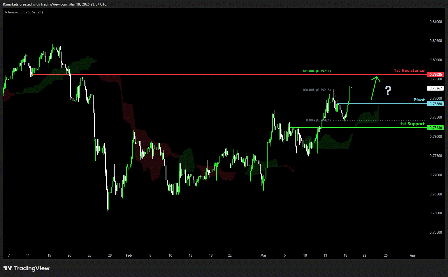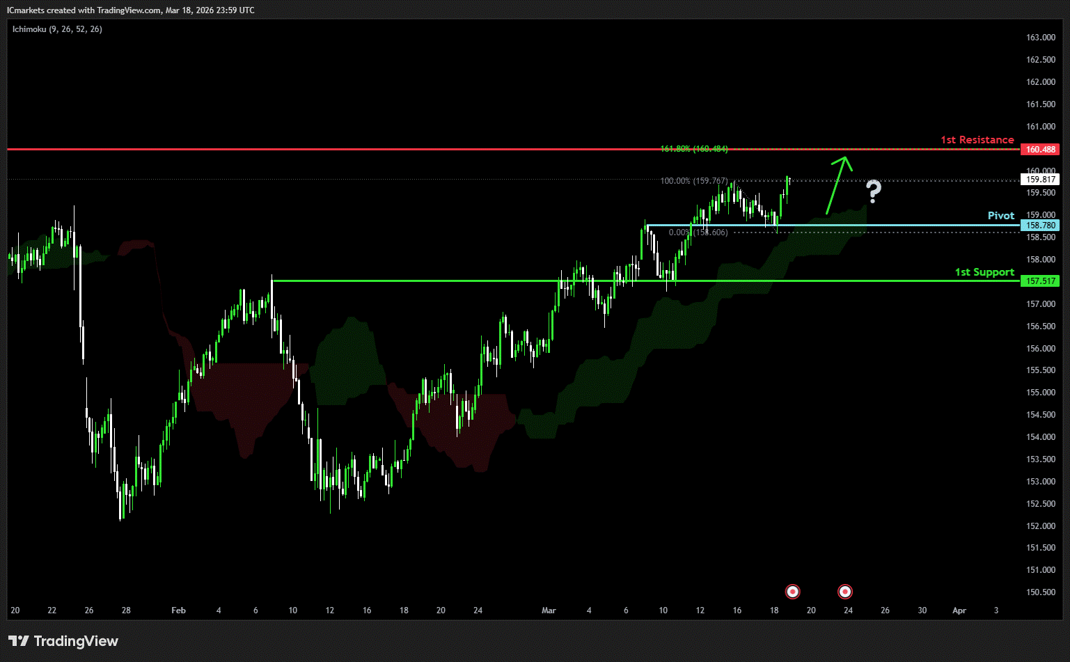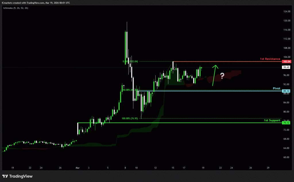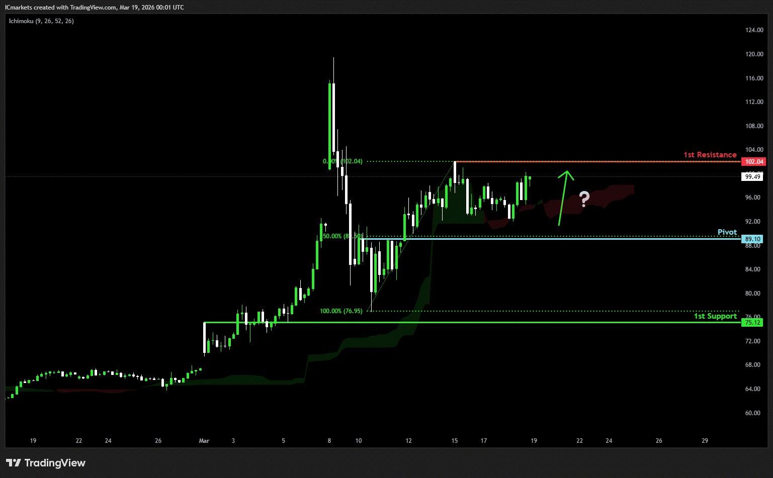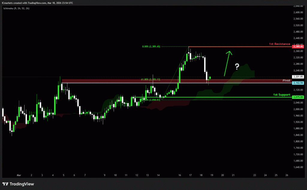 The price could see a short-term pullback toward the pivot before rising again toward the 1st resistance.