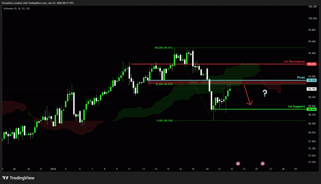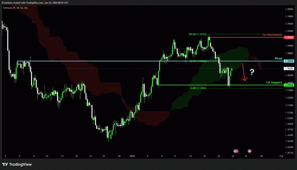 The price could see a short-term pullback toward the pivot before continuing its bearish move down toward the 1st support.