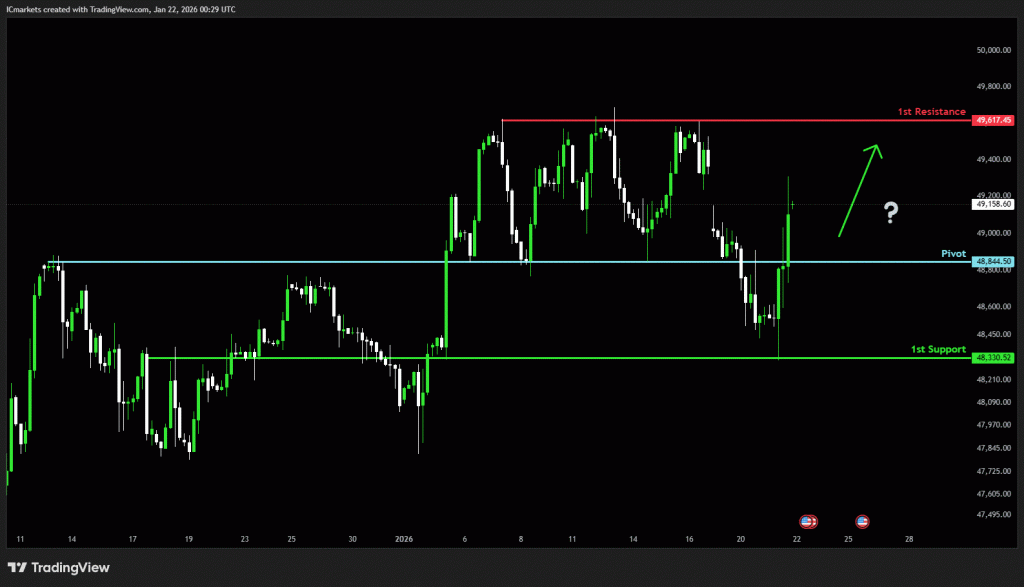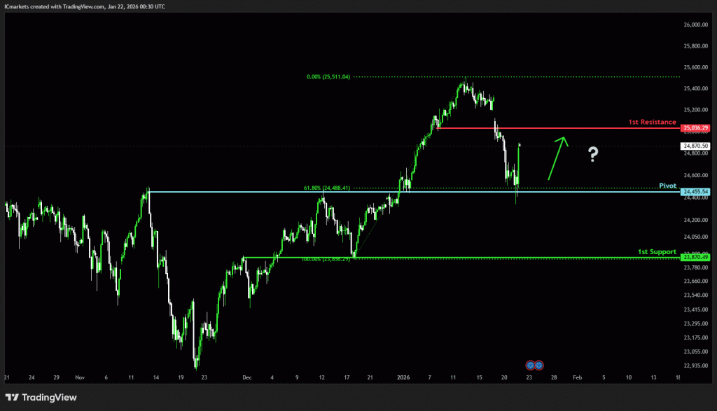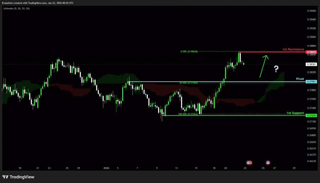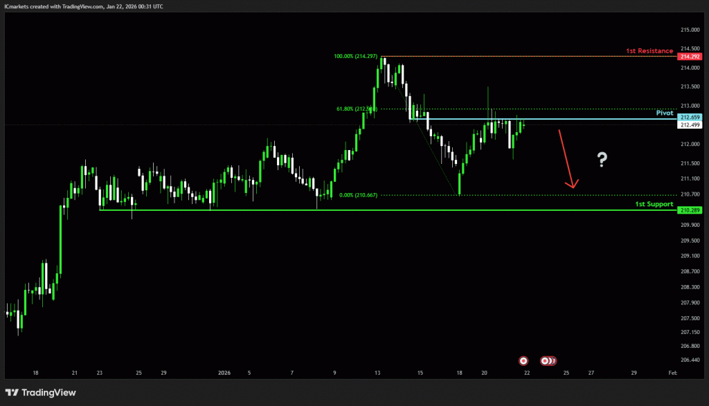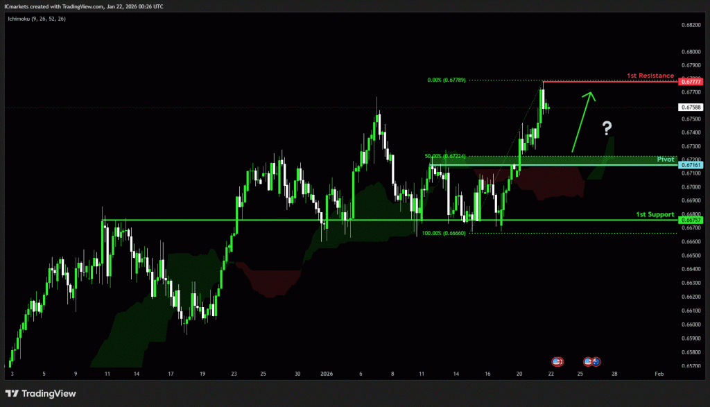 The price could see a short-term pullback toward the pivot before continuing its bullish move toward the 1st resistance
