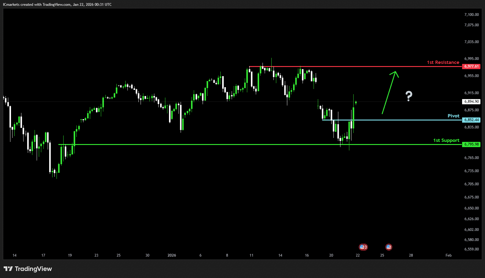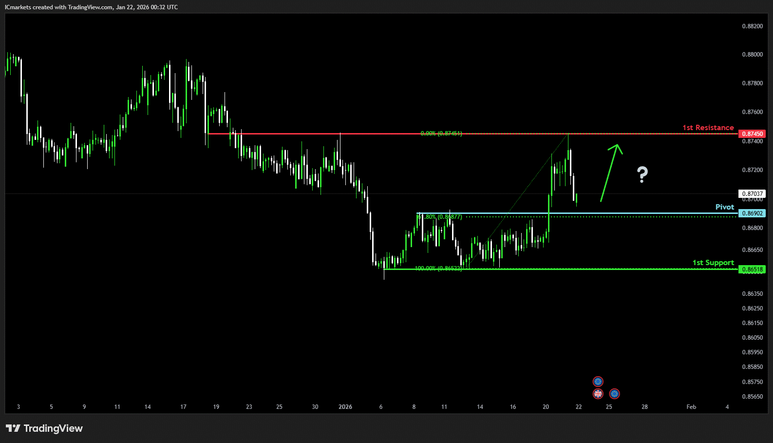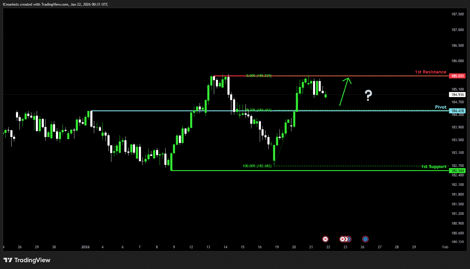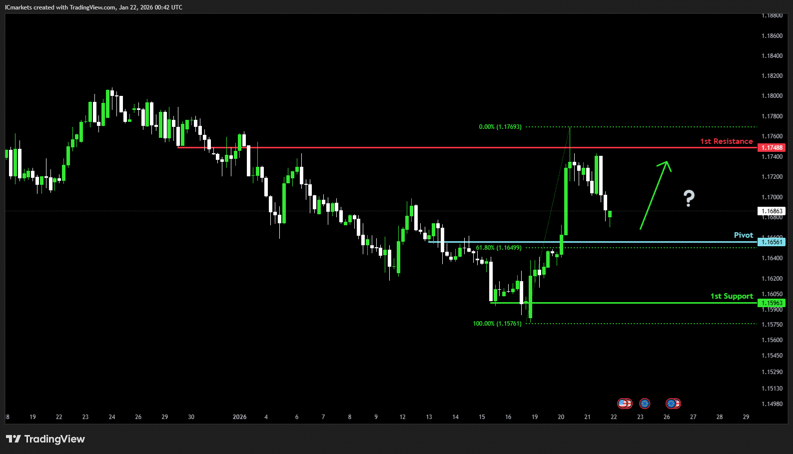 The price could see a short-term pullback toward the pivot before continuing its bullish move toward the 1st resistance