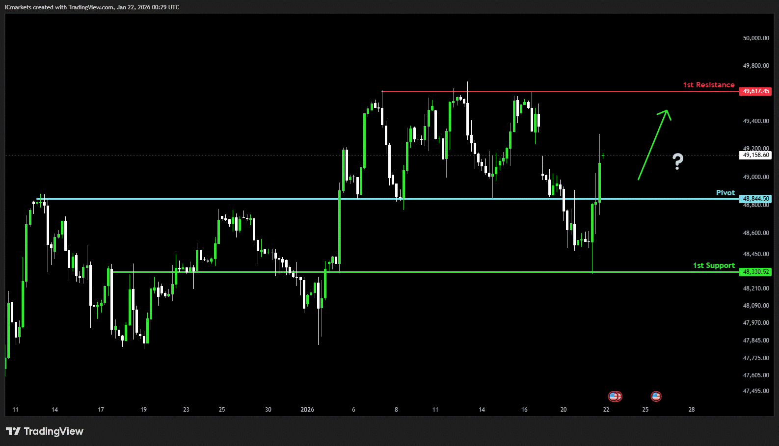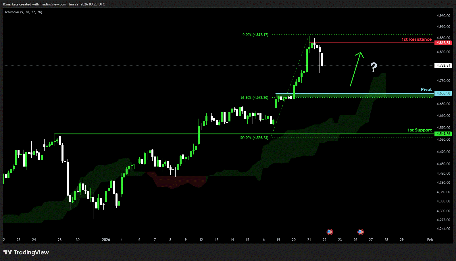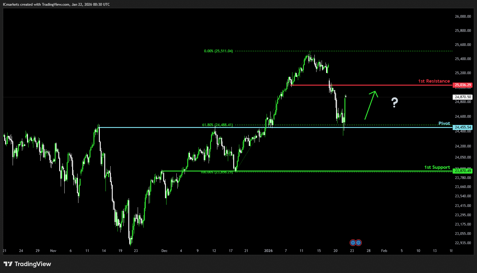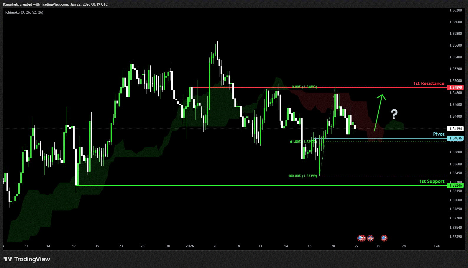 The price could see a short-term pullback toward the pivot before continuing its bullish move toward the 1st resistance