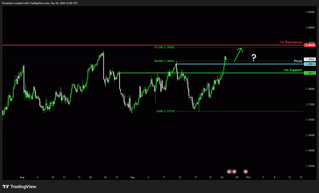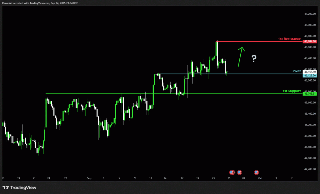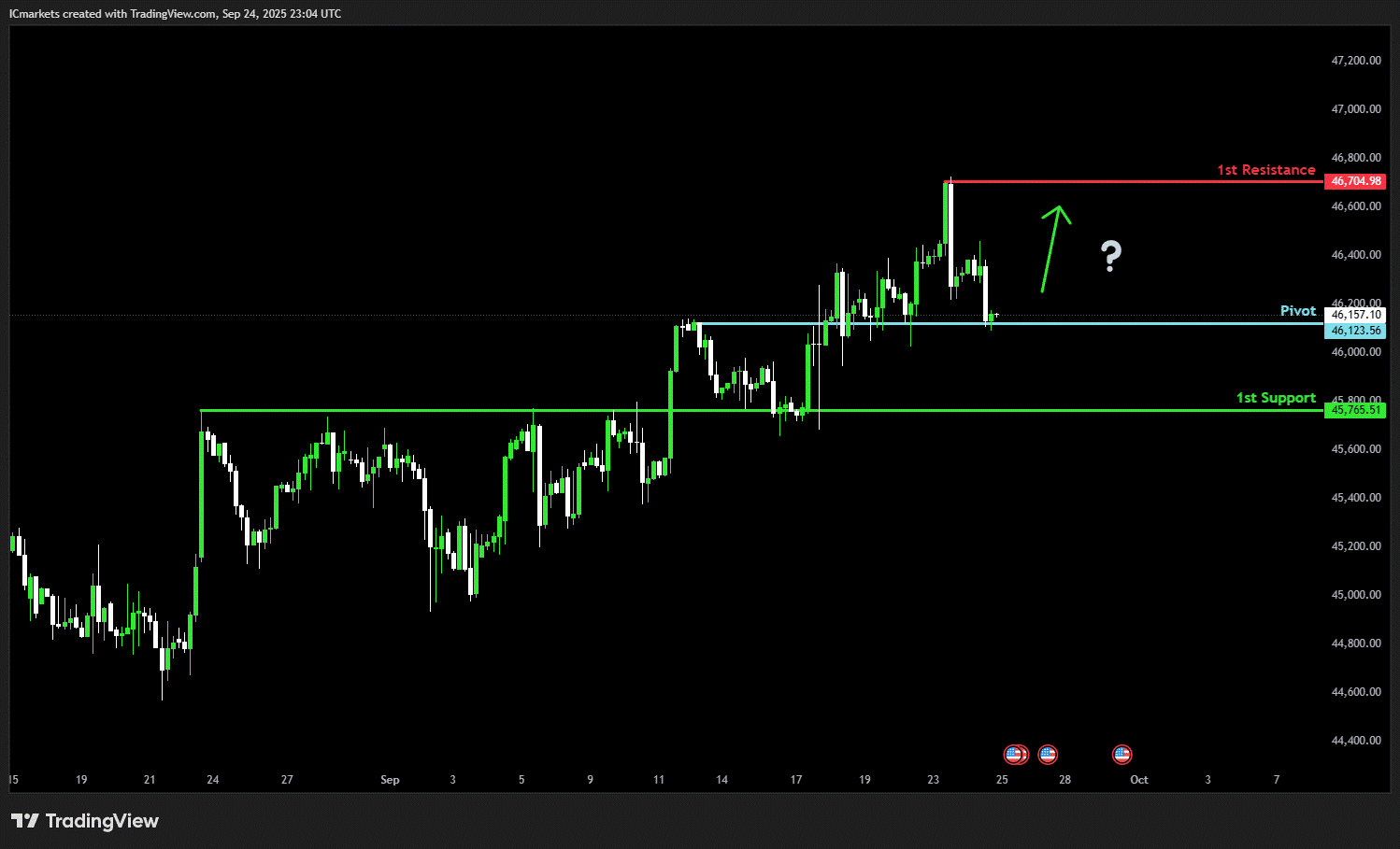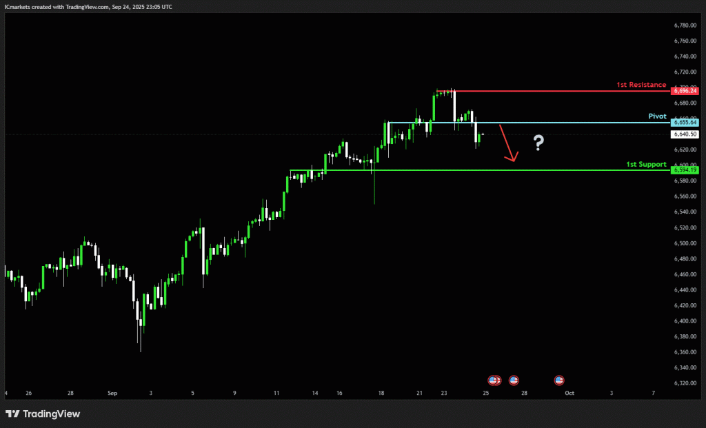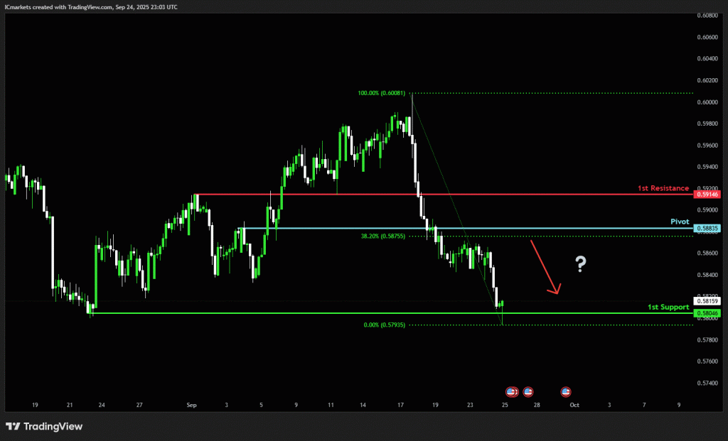 The price could see a short-term pullback toward the pivot before continuing its bearish move down toward the 1st support.