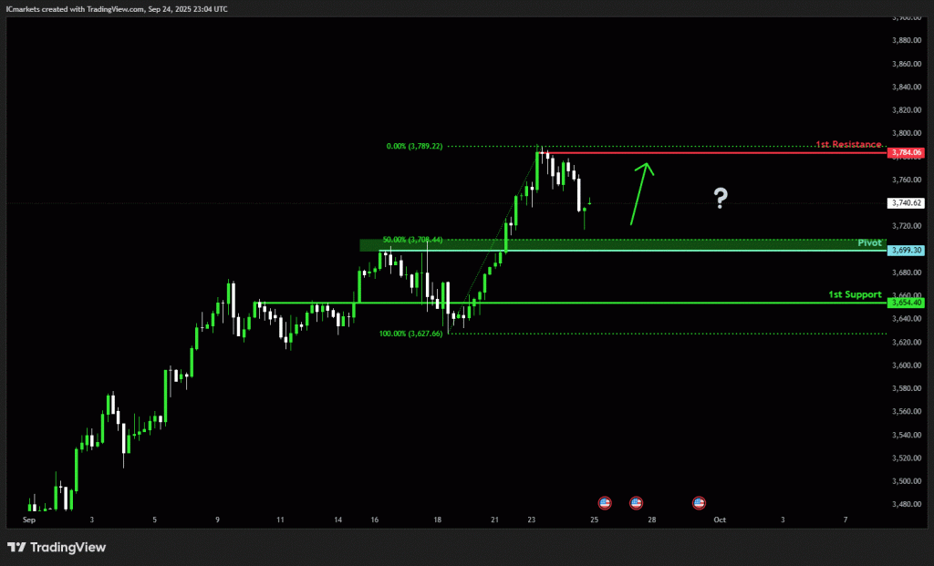 The price could make a short-term pullback toward the pivot before rising again toward the 1st resistance
