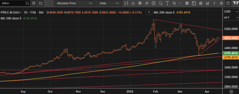 Gold has seen decent moves higher over the last few days on the back of updates from both the US and Iran that they are prepared to talk again while news of potential talks between Israel and Lebanon – the first for 30 years – has exacerbated those moves. But now the market will need to see evidence one way of the other, and we are expecting that in the coming sessions, and Gold is sitting at some strong technical levels that will enable traders to take advantage of moves in either direction. It has topped out near monthly highs in trading today and further strength could see it break higher to $5,000 an ounce with longer-term resistance now just under the $5,200 level on the Daily chart, whilst downside support is relatively close near $4,700 with a break there likely to open the way for a move back towards recent lows.