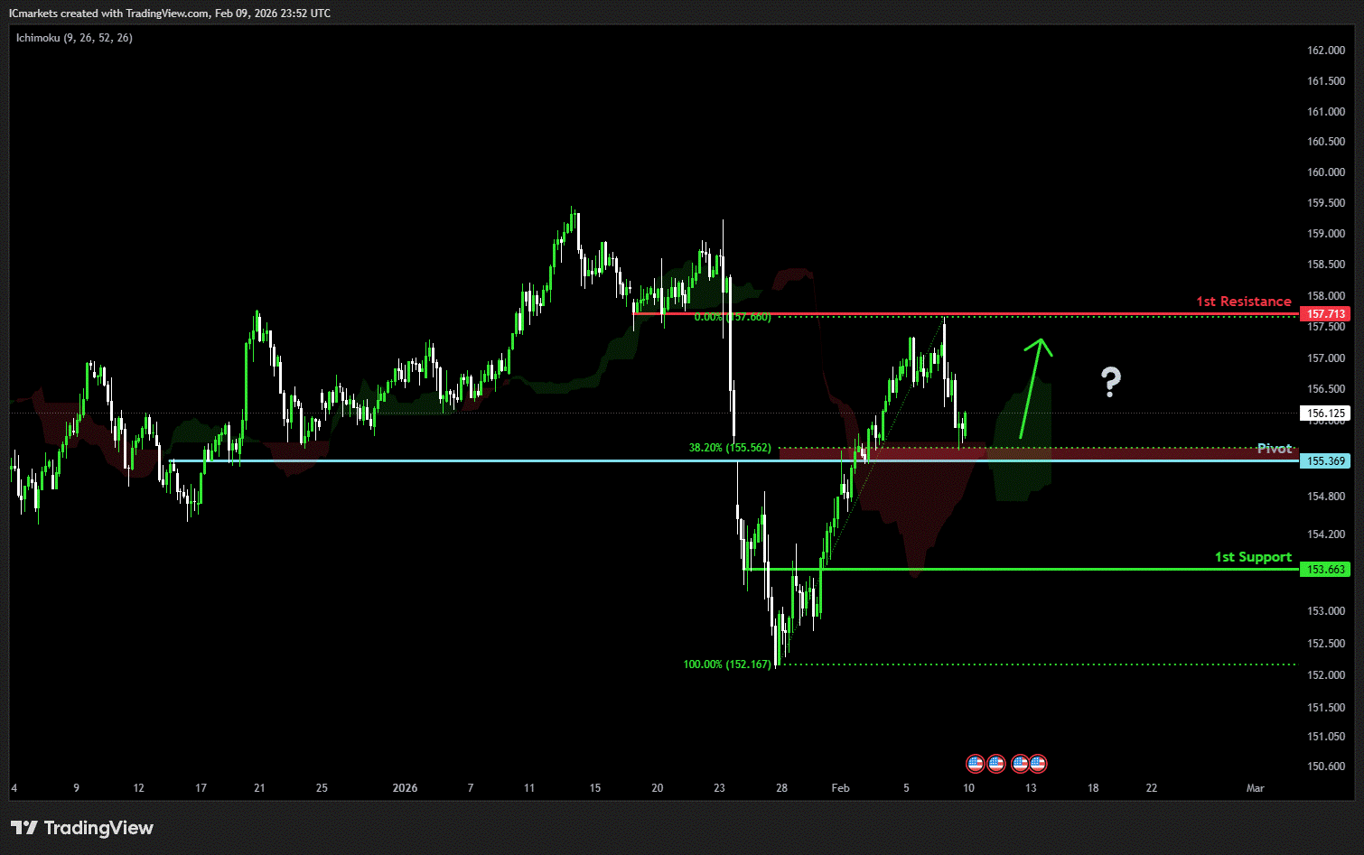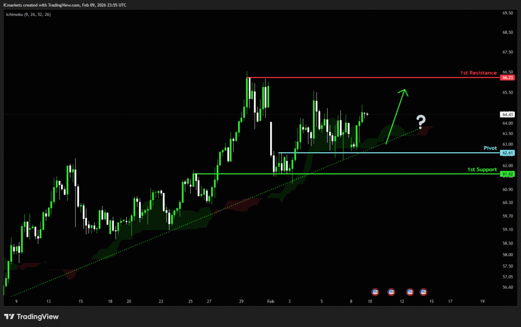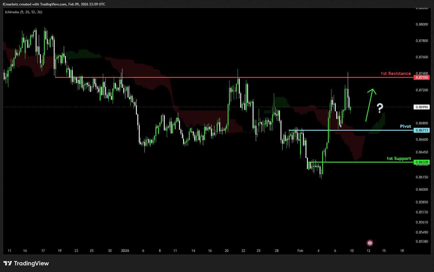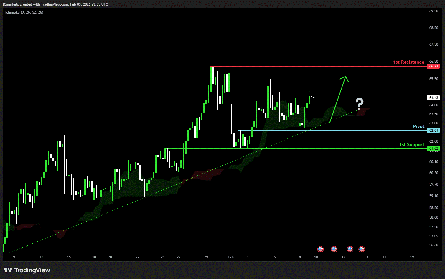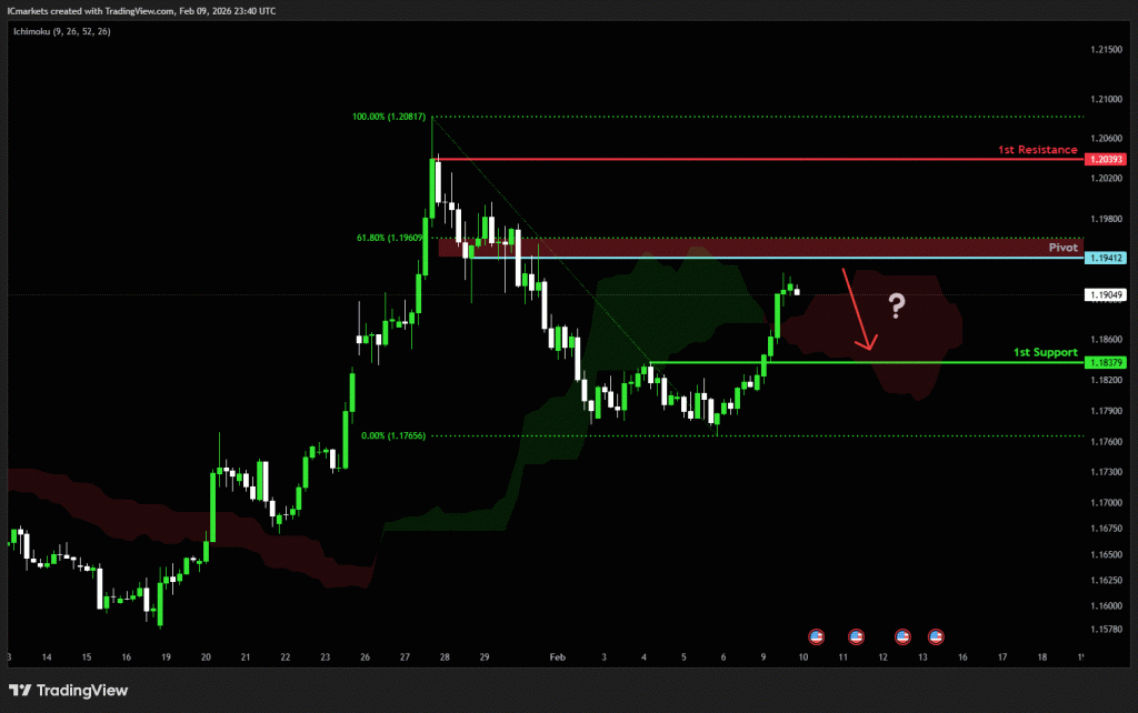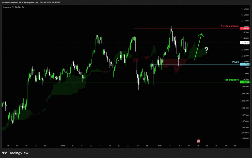 The price could see a short-term pullback toward the pivot before continuing its bullish move toward the 1st resistance