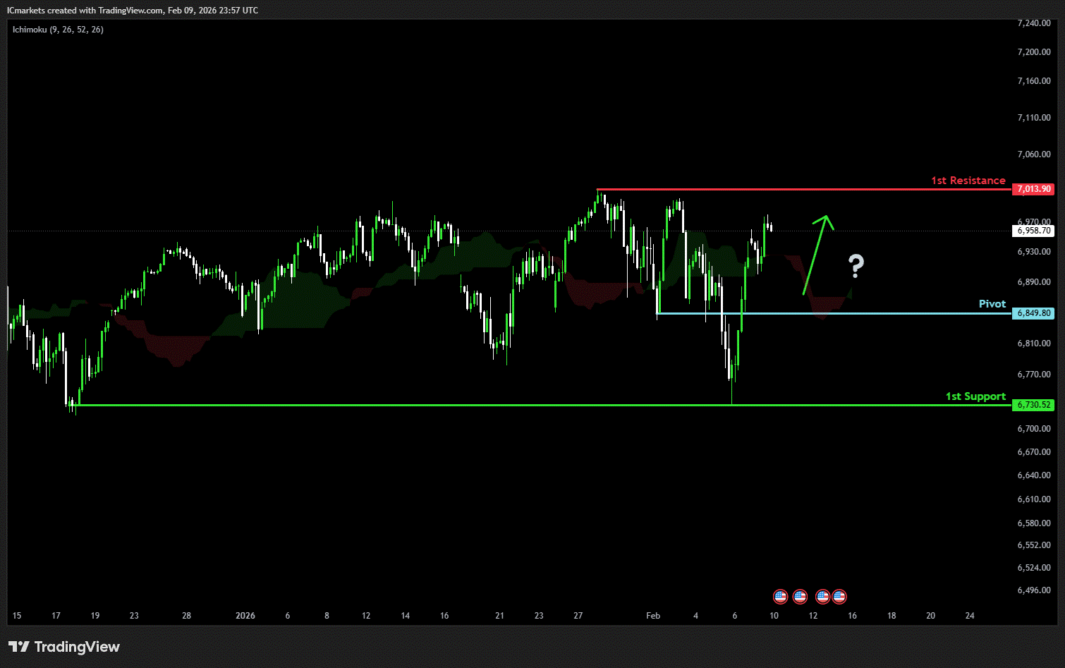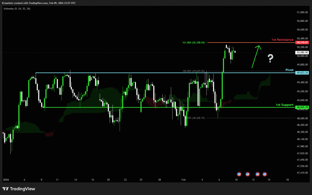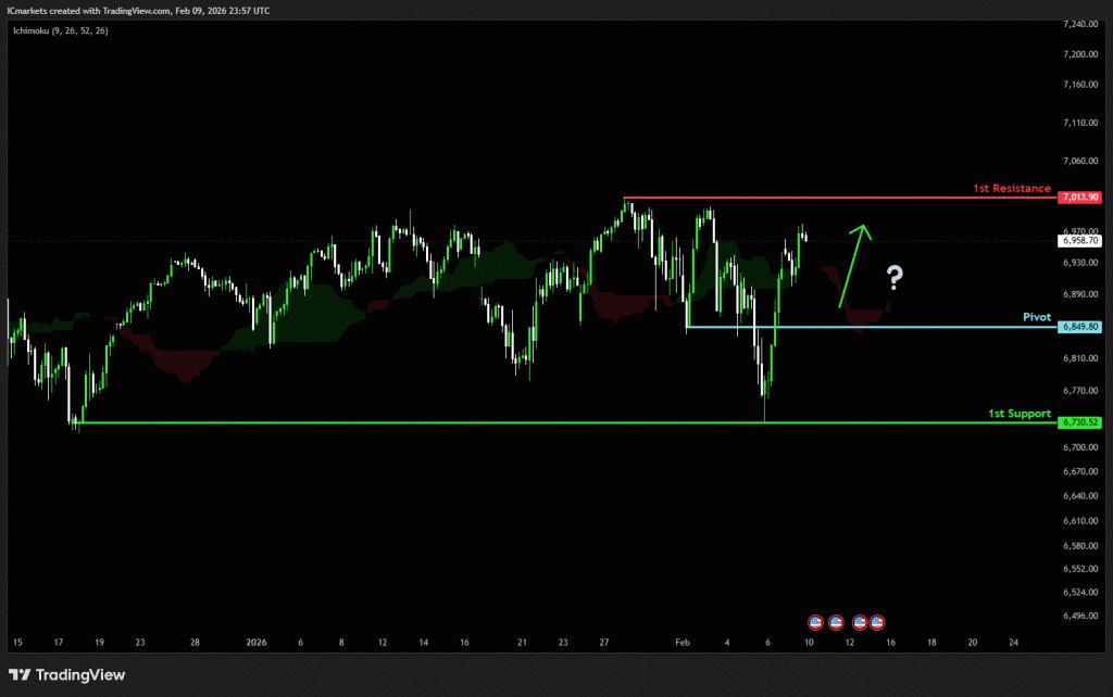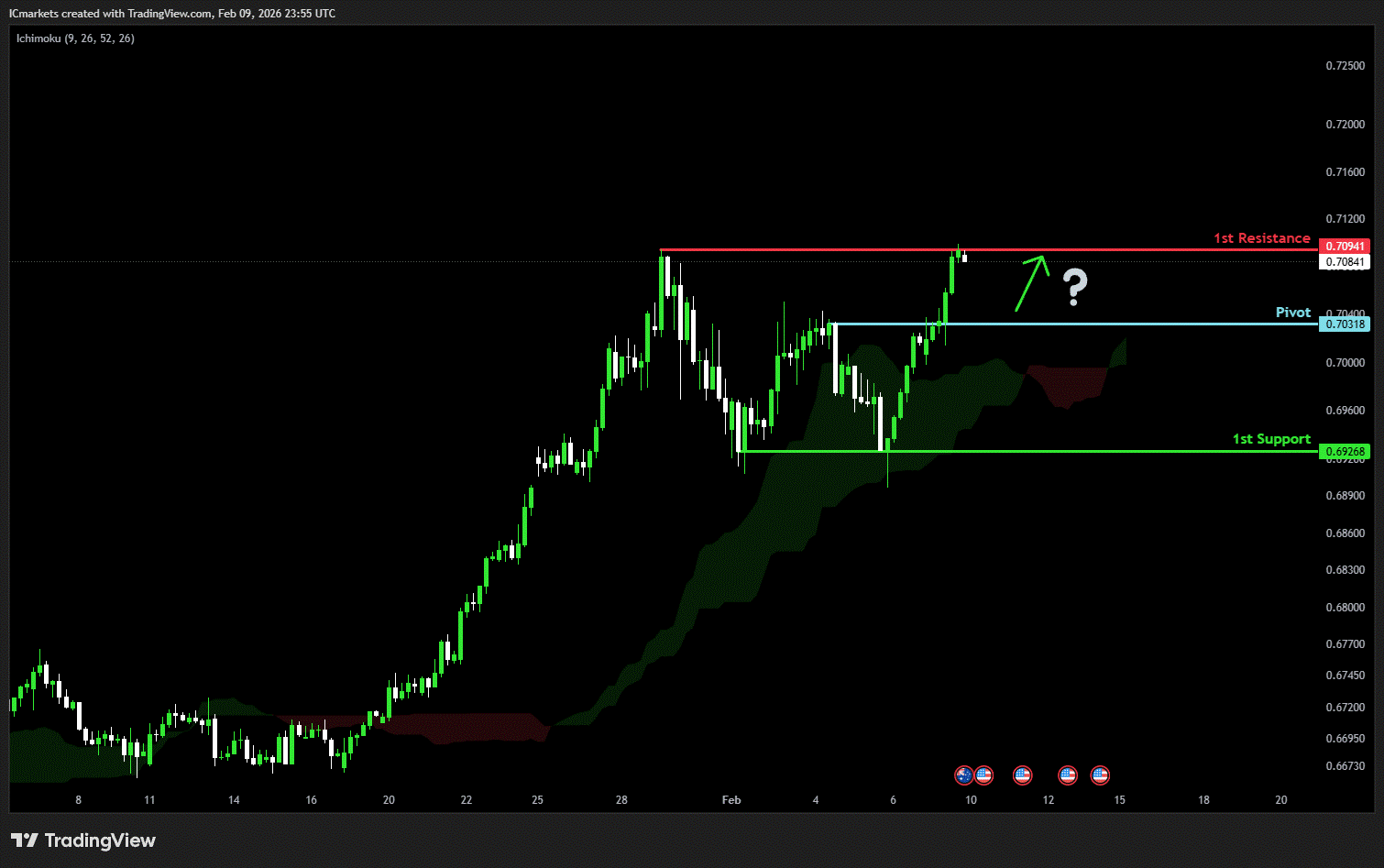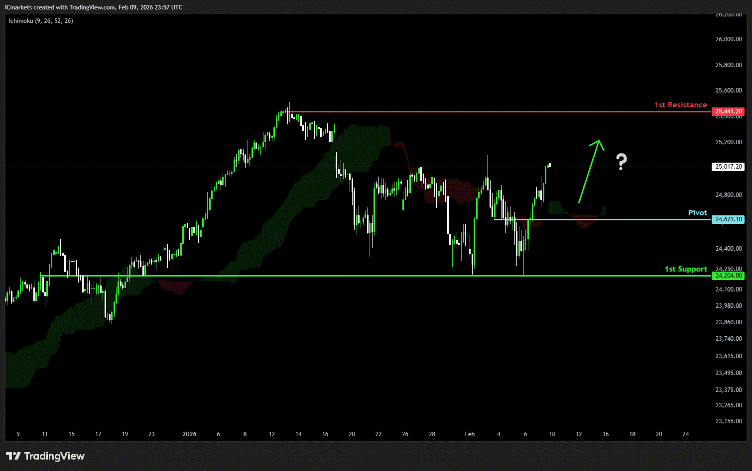 The price could see a short-term pullback toward the pivot before continuing its bullish move toward the 1st resistance