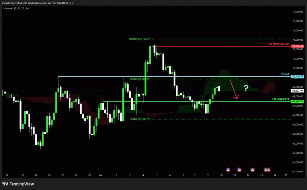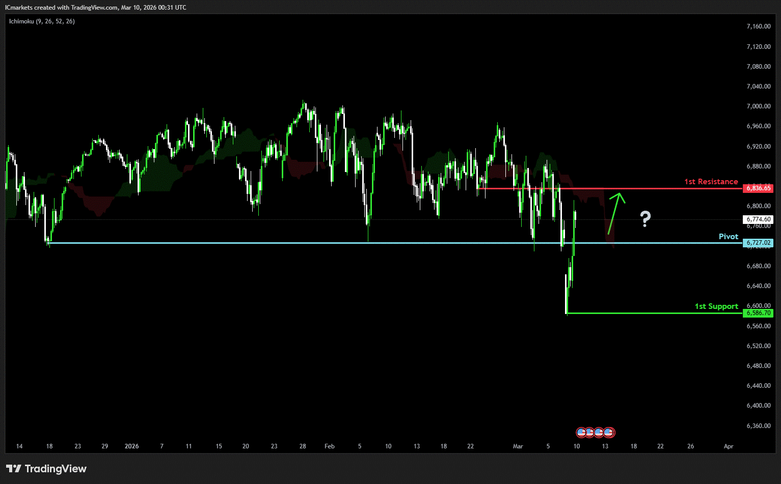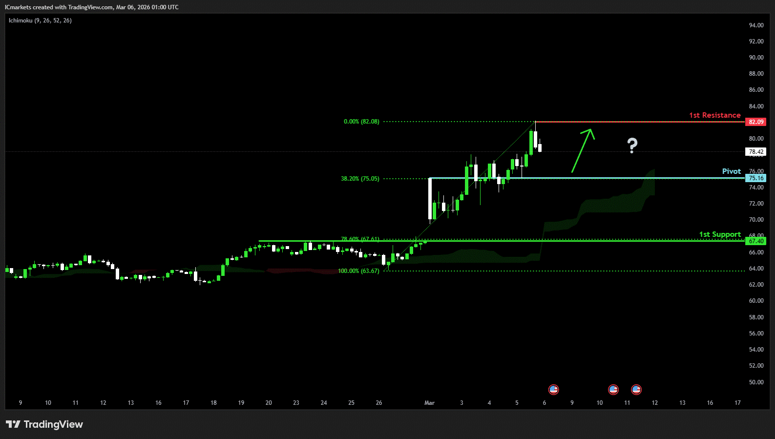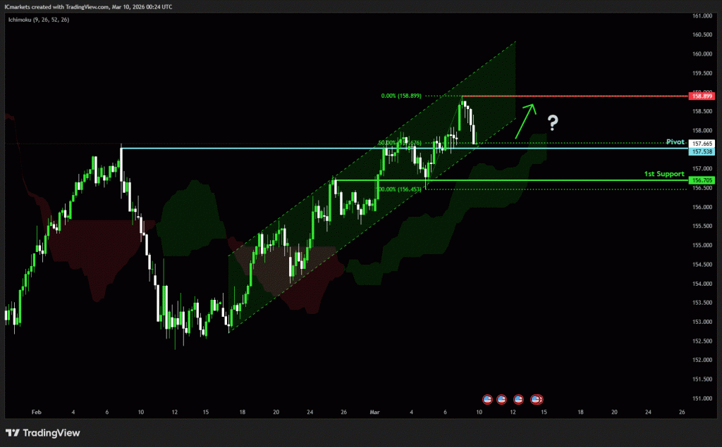 The price could see a short-term pullback toward the pivot before rising again toward the 1st resistance.