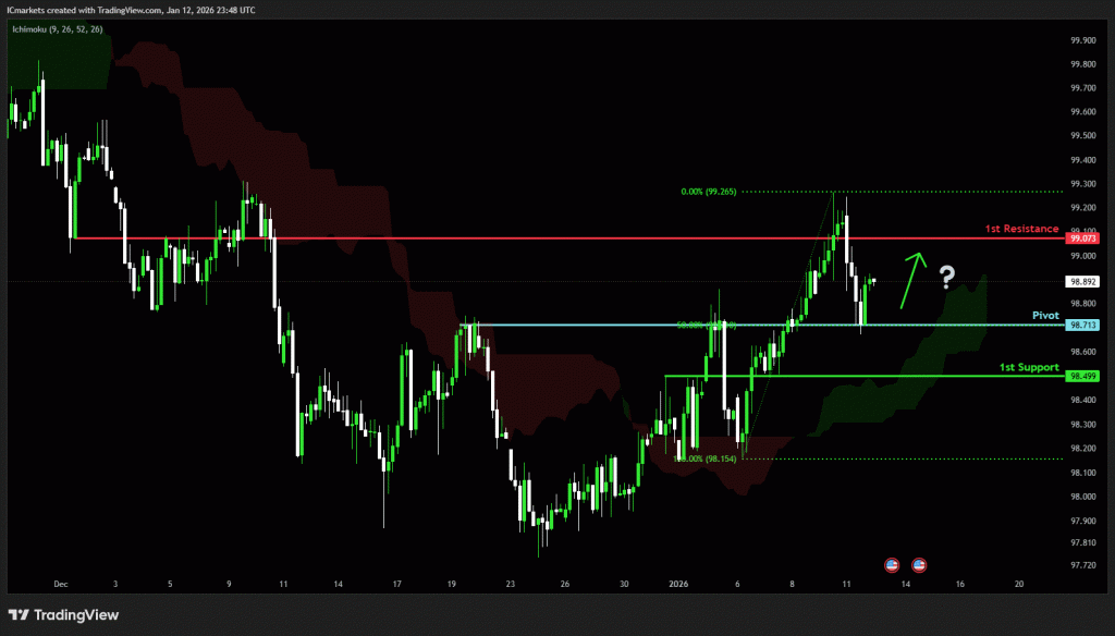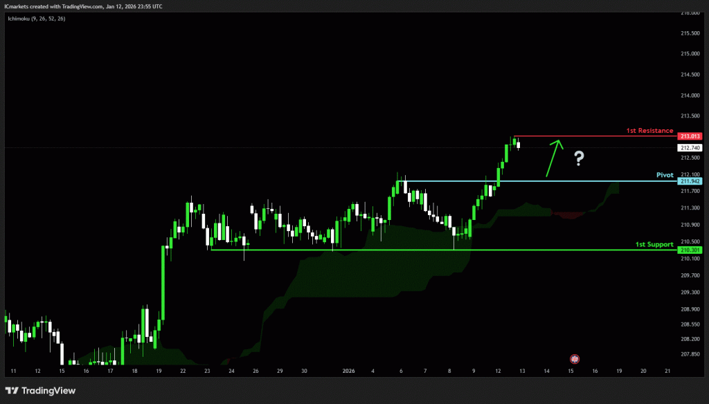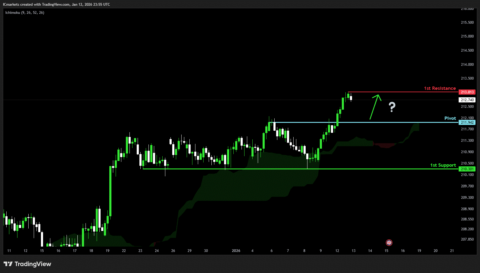The price could see a short-term pullback toward the pivot before rising again toward the 1st resistance.
