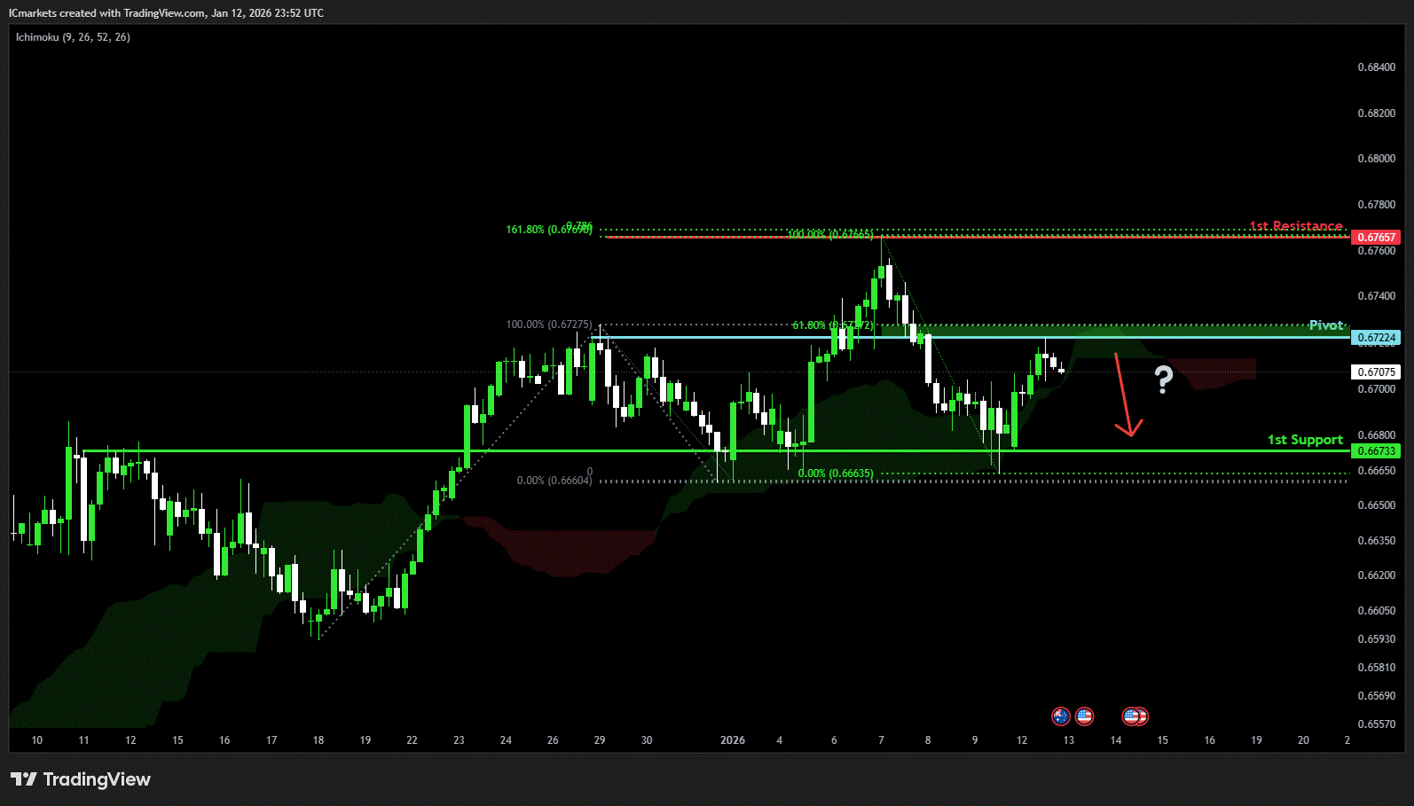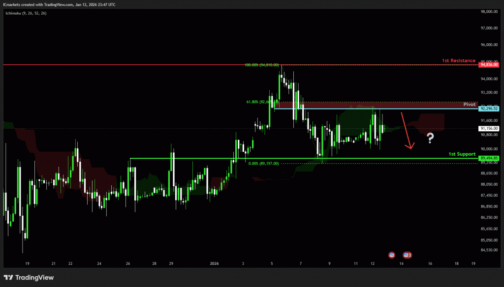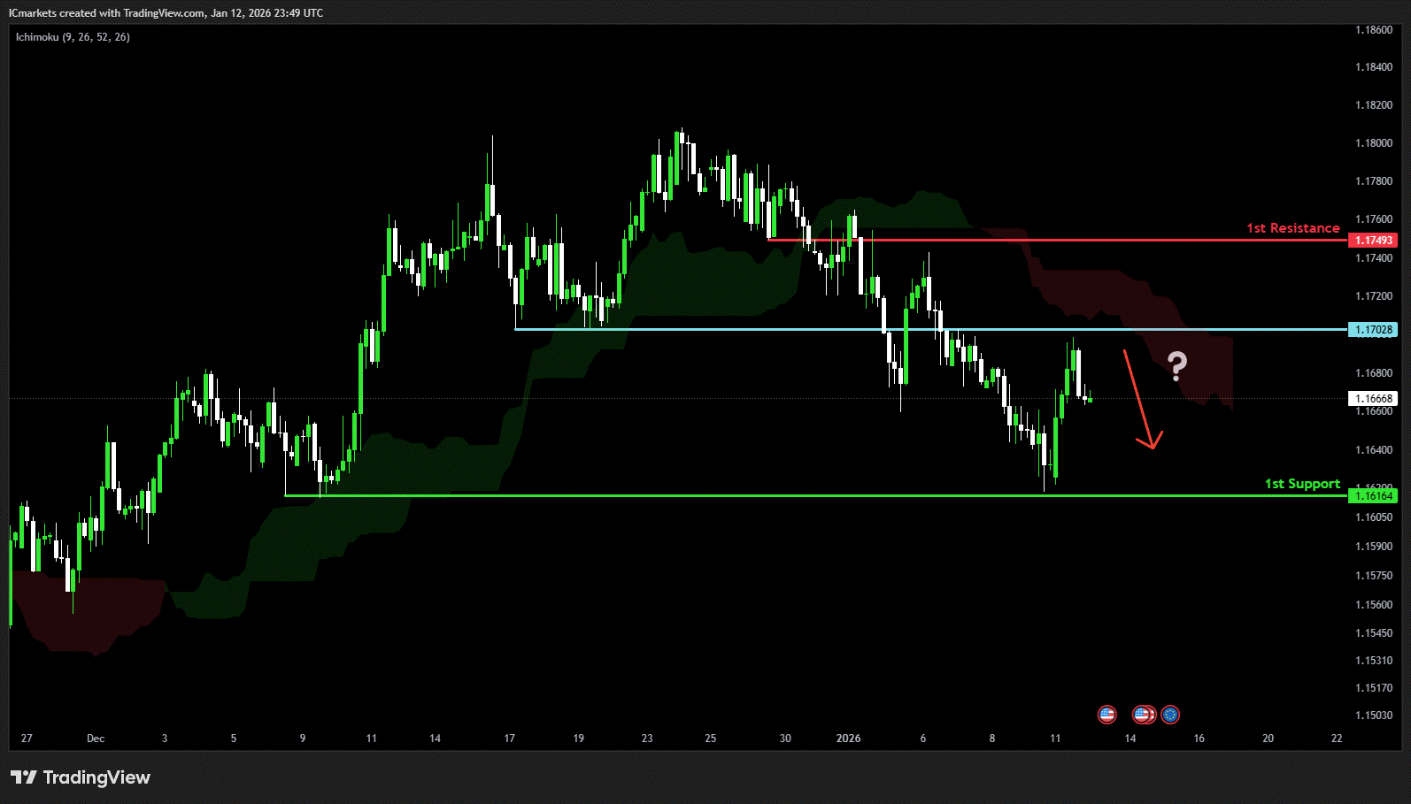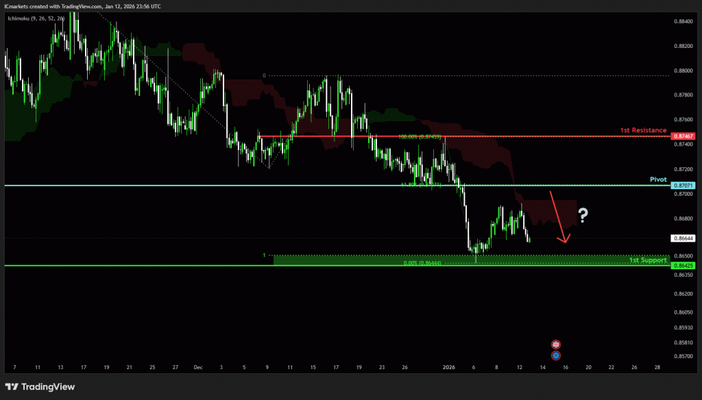 The price could see a short-term pullback toward the pivot before continuing its bearish move down toward the 1st support.