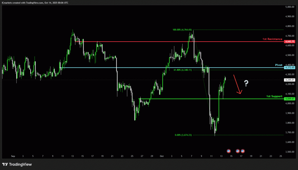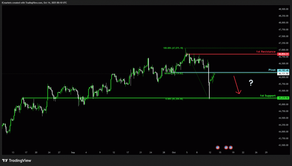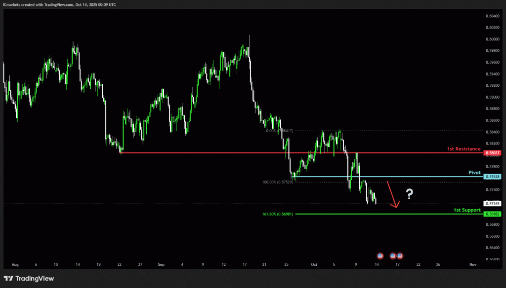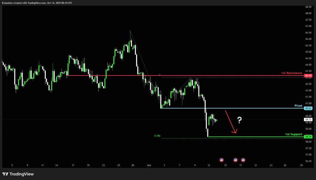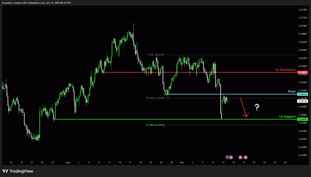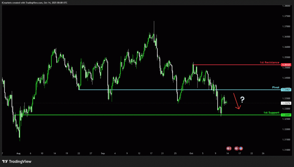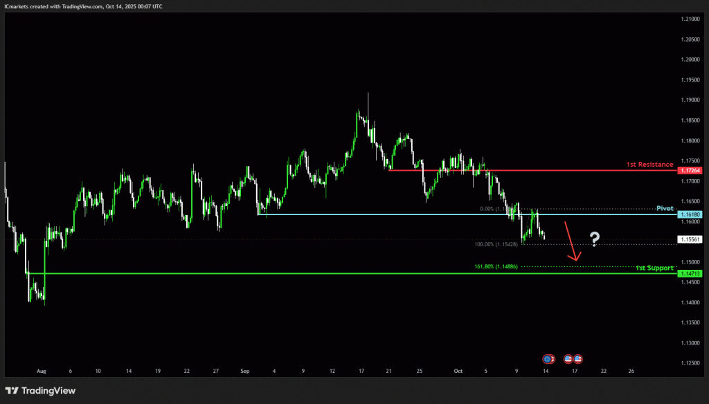 The price could see a short-term pullback toward the pivot before continuing its bearish move down toward the 1st support.